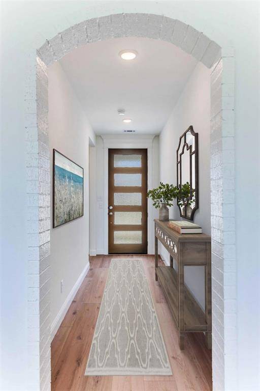 in the entry, living, kitchen, mud hall, utility, and halls for a seamless, modern look. The chef's