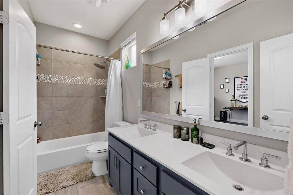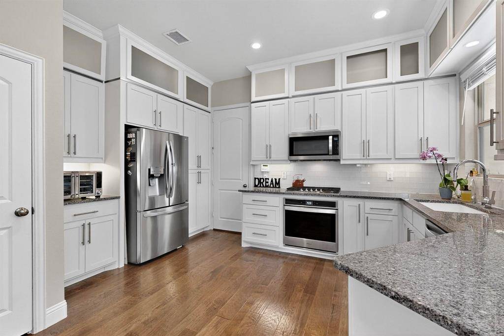 PRIME RIVERWALK LOCATION! This STUNNING home faces the water and is loaded with UPGRADES—ENGINEERED HARDWOOD floors, UPGRADED LIGHTING & BATHROOM FIXTURES, GRANITE COUNTERTOPS, and even a “SMURF” in-wall conduit for clean TV setups, ensuring a clutter-free look. The OPEN-CONCEPT kitchen shines with STAINLESS STEEL APPLIANCES, PENDANT LIGHTING, a WALK-IN PANTRY, and convenient ABOVE-CABINET STORAGE. An OFFICE which faces the Riverwalk and a HALF-BATH also adorns the downstairs space. Upstairs, the spacious PRIMARY SUITE offers a beautiful view of the river, an ENSUITE with DOUBLE SINKS, a separate shower & tub, and a large WALK-IN closet. The 2 secondary bedrooms are also spacious and share an ENSUITE, complete with DUAL SINKS and a SHOWER-TUB combo. An upstairs BONUS FLEX ROOM offers endless options—a second office, gym, playroom, or media space! This thoughtfully-designed home also includes a 2-car GARAGE with 3 HANGING CEILING RACKS for extra storage. This home blends modern upgrades with everyday comfort, offering an unbeatable location with SCENIC VIEWS and WALKABLE ACCESS to dining, shops, and entertainment—this is Flower Mound living at its BEST! HOA fees cover the exterior of the structure, roof, landscaping and yard maintenance.