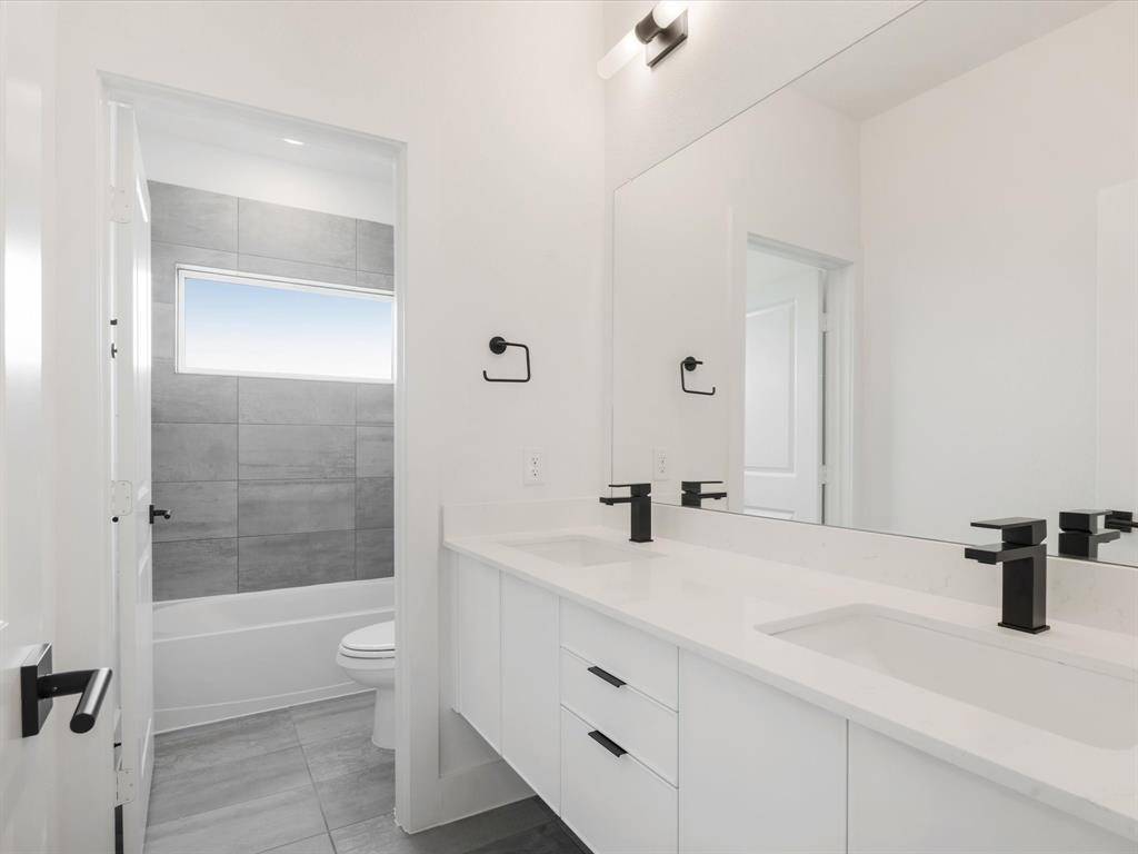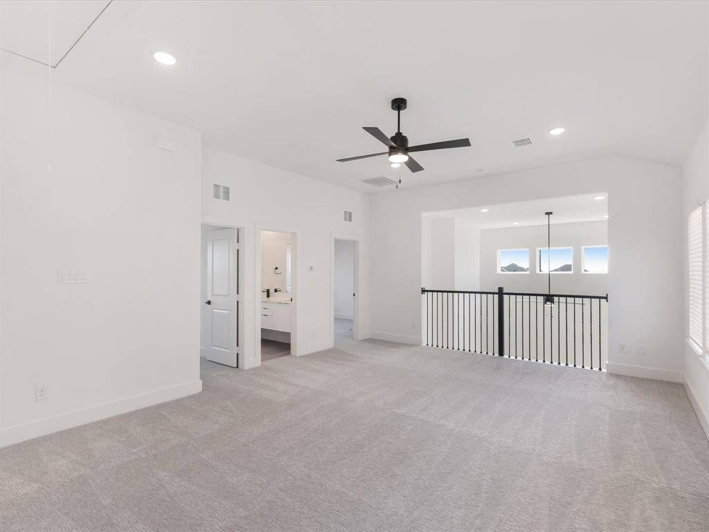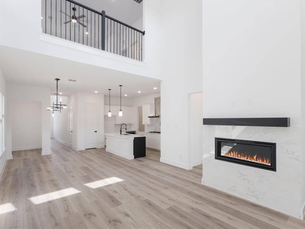 Ready Now! Feel like a Royal in our Alexander floor plan. Step into the epitome of modern living with this brand-new Monarch Home, where architectural sophistication blends seamlessly with everyday comfort. This 4-bedroom, 3.5-bath masterpiece includes a spacious game room and a functional pocket office, offering versatility for both entertainment and work-from-home lifestyles. Designed for discerning tastes, the home boasts premium finishes throughout. The Chef-Inspired Kitchen is outfitted with a JennAir appliance package, including double ovens and a 5-burner gas cooktop, making it a culinary dream. Enjoy the elegant touch of quartz countertops, a pot filler, Blanco Silgranit sink, and soft-close cabinetry with upgraded hardware. A decorative backsplash adds a sleek, modern flair. Gather around the crystal-accented gas fireplace under the ambient glow of luxury Kichler lighting. The Karastan Cultivated wood flooring in common areas downstairs as well primary bedroom, combined with 8-foot doors and 12x24 sleek tile accents, creates a clean and contemporary vibe. The Resort-Worthy Primary Suite has a luxurious primary bath featuring floating cabinets, a large frameless glass shower, decorative tiles, framed mirrors, and quartz countertops with undermount sinks.