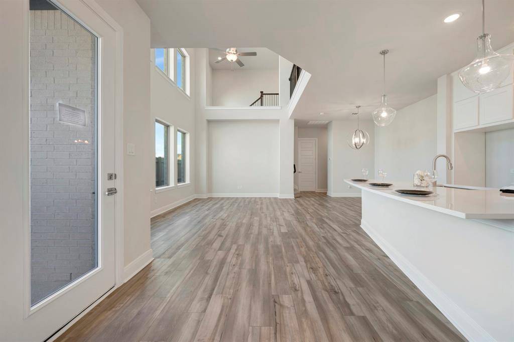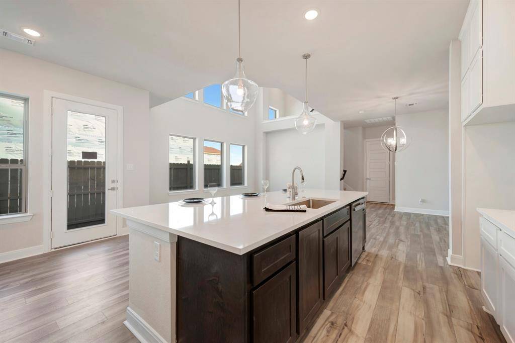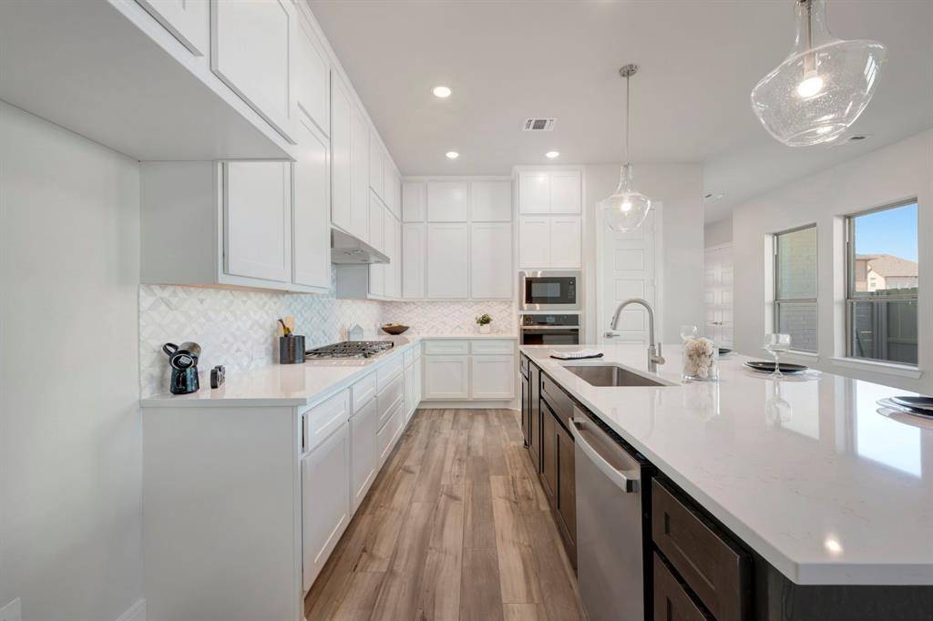 Step into timeless elegance and modern comfort in this stunning Northwest-facing home, where every detail is thoughtfully curated to elevate your lifestyle. As you enter, you're welcomed by an open floor plan that seamlessly connects living, dining, and kitchen spaces-ideal for both intimate gatherings and grand entertaining. At the heart of the living room, a cozy fireplace invites warm evenings and relaxed weekends, casting a golden glow across the space. The kitchen is a true showstopper, featuring a grand island and stacked cabinets that stretch to the ceiling, offering both beauty and function with abundant storage and a sleek, custom look. The owner's retreat is your personal sanctuary. Unwind in the spa-inspired bathroom, complete with a luxurious drop-in tub perfect for long soaks. Dual his-and-hers walk-in closets provide private, organized spaces to start and end each day with ease. With its intentional design, premium finishes, and a directional orientation that captures the best natural light throughout the day, this home offers comfort, style, and a touch of everyday indulgence.
