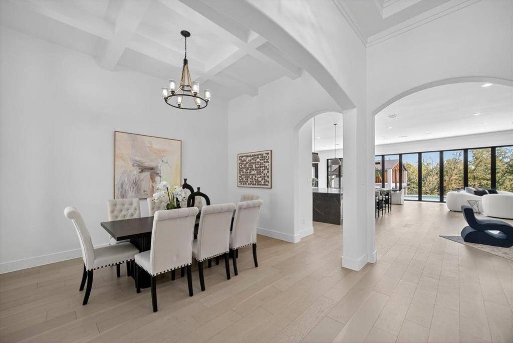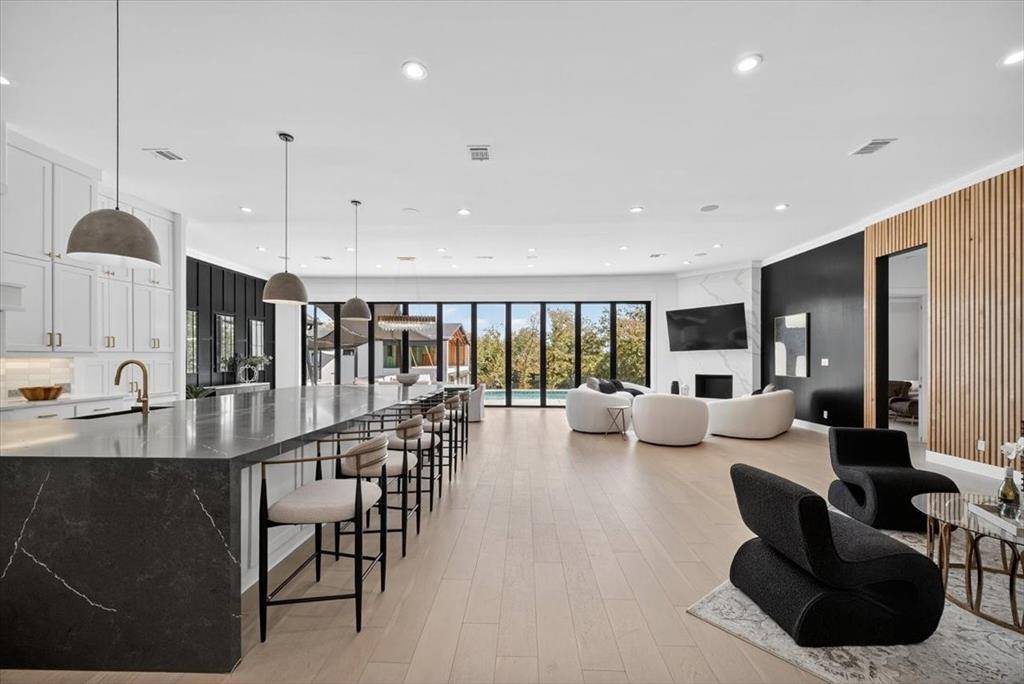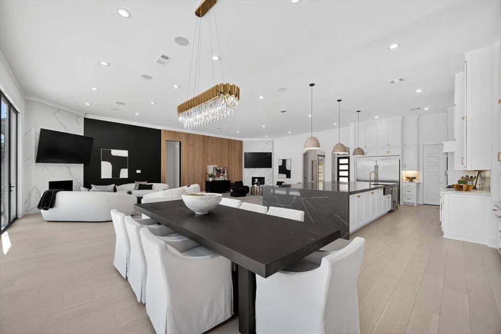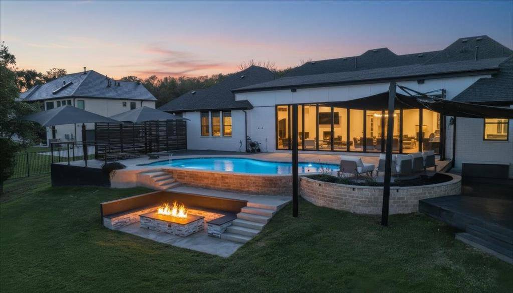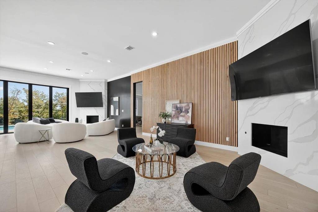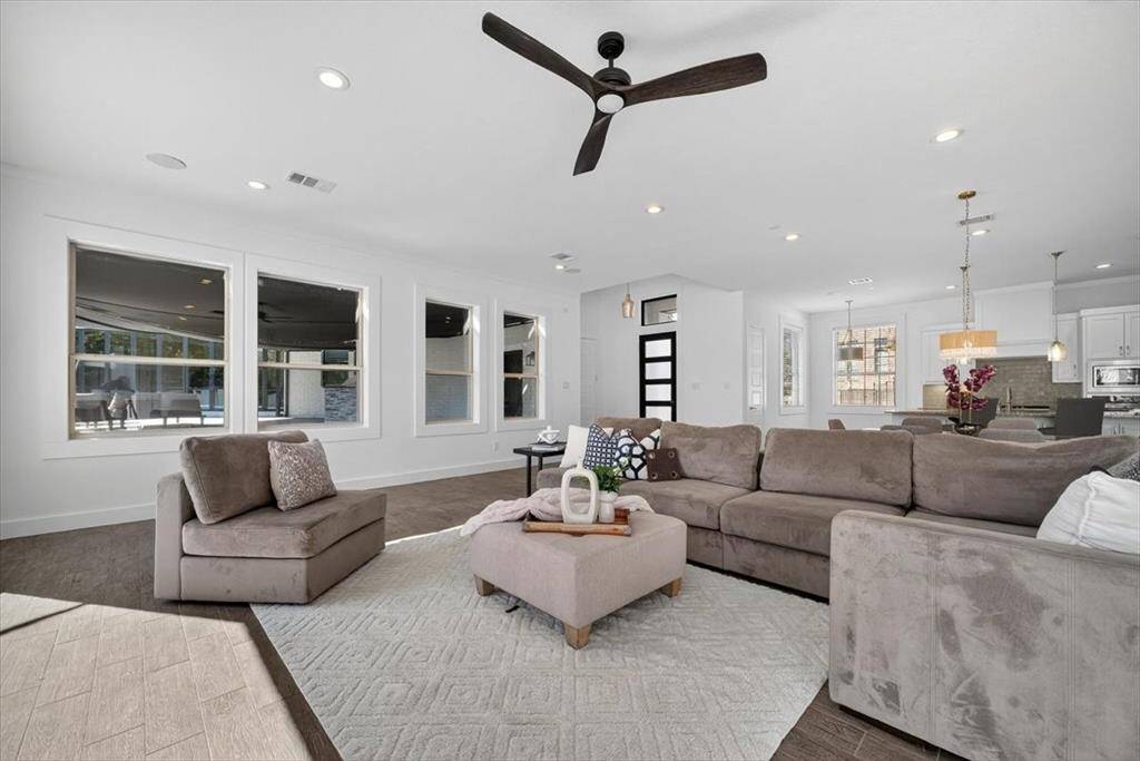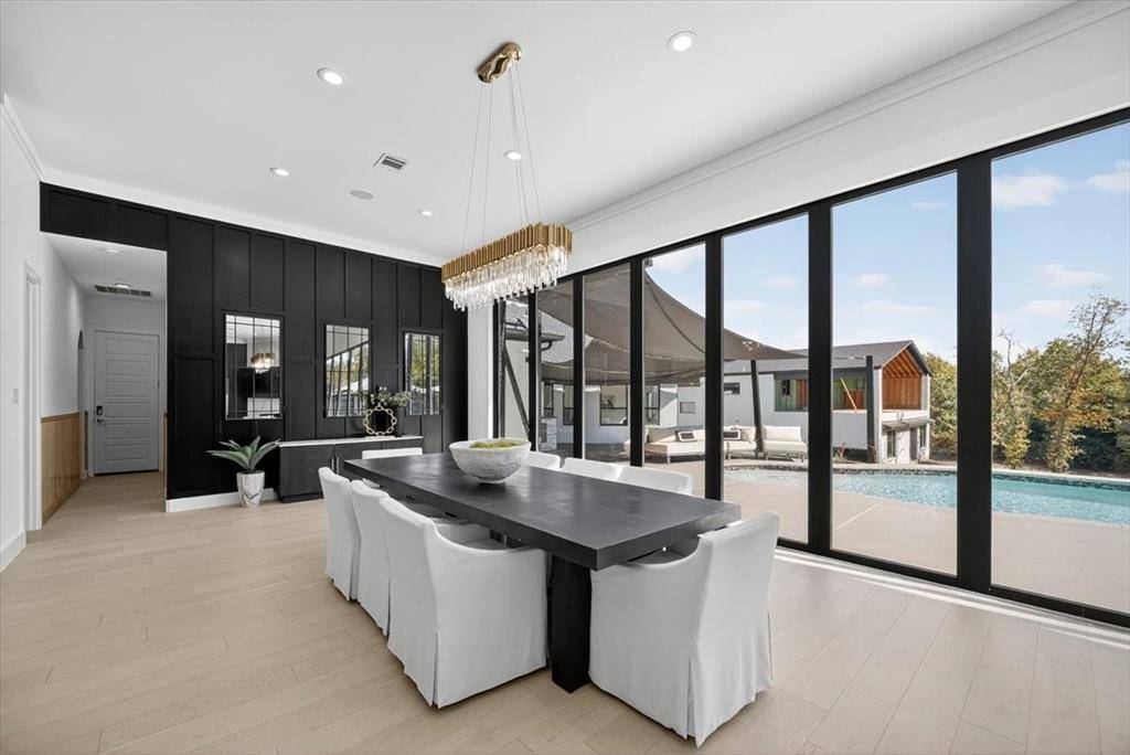 Experience elevated living inside one of Flower Mound's most exclusive gated and secured communities. This extraordinary estate delivers a rare combination of luxury, functionality, and comfort with an assumable 3.1 percent loan that makes owning it as smart as it is spectacular. From the moment you walk through the doors, there is an immediate sense of calm and openness. The layout flows effortlessly beneath 14-foot ceilings with natural light pouring through a wall of windows. The kitchen is the heart of the home, a chef's dream with a massive island that makes cooking and entertaining easy, whether it is Sunday breakfast or a full house of guests. A 30-foot panoramic glass door opens completely, connecting the living room to the backyard in a way that makes the space feel alive. Step outside and you will see why this home was designed for both living and leisure, featuring a sparkling pool, outdoor kitchen, granite firepit seating, and shade sails that create a private resort feel. Every inch of this home was designed for comfort, with two washers and dryers in the utility room, a whole home Sonos sound system, and dual Nest thermostats to keep each area just right. The primary suite is private and serene, with a flex room perfect for an office, nursery, or gym, and a custom closet that connects directly to the laundry room. Beyond the main home is a 6,500 square foot unfinished sports complex with HVAC, two bathrooms, and the framework for a golf simulator and pickleball court or anything your imagination can come up with. The seven-car garage includes a tornado shelter, and the detached guest house features two bedrooms, two bathrooms, a full kitchen, living space, and office for family or long term guests. Set within a gated enclave bordered by the rolling greens of Tour 18, this home offers privacy, convenience, and elegance with an unbeatable 3.1 percent assumable loan.