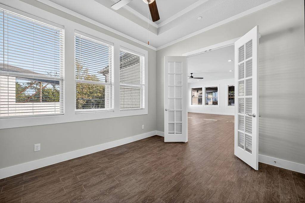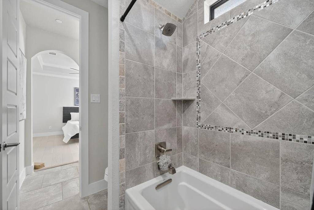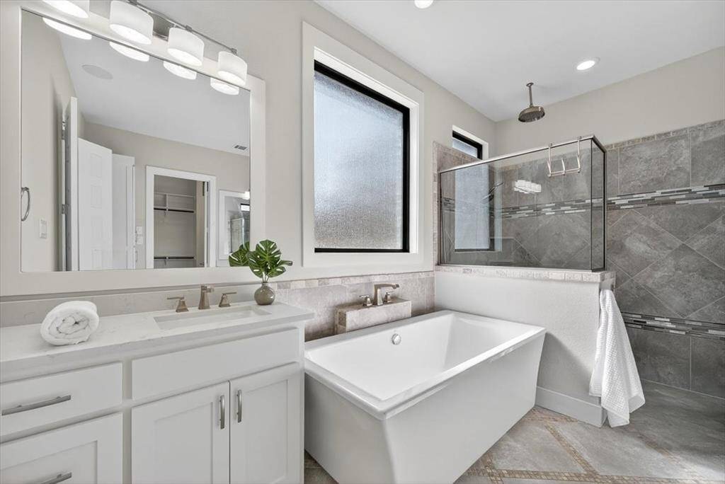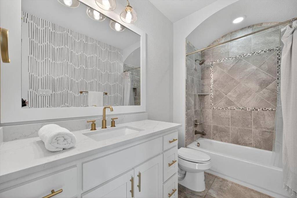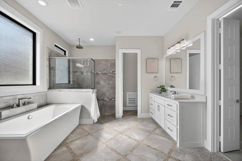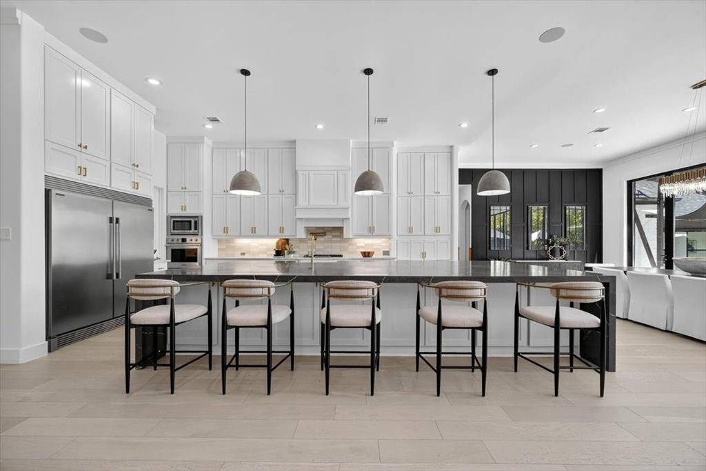 Experience elevated living inside one of Flower Mound's most exclusive gated and secured communities. This extraordinary estate delivers a rare combination of luxury, functionality, and comfort with an assumable 3.1 percent loan that makes owning it as smart as it is spectacular. From the moment you walk through the doors, there is an immediate sense of calm and openness. The layout flows effortlessly beneath 14-foot ceilings with natural light pouring through a wall of windows. The kitchen is the heart of the home, a chef's dream with a massive island that makes cooking and entertaining easy, whether it is Sunday breakfast or a full house of guests. A 30-foot panoramic glass door opens completely, connecting the living room to the backyard in a way that makes the space feel alive. Step outside and you will see why this home was designed for both living and leisure, featuring a sparkling pool, outdoor kitchen, granite firepit seating, and shade sails that create a private resort feel. Every inch of this home was designed for comfort, with two washers and dryers in the utility room, a whole home Sonos sound system, and dual Nest thermostats to keep each area just right. The primary suite is private and serene, with a flex room perfect for an office, nursery, or gym, and a custom closet that connects directly to the laundry room. Beyond the main home is a 6,500 square foot unfinished sports complex with HVAC, two bathrooms, and the framework for a golf simulator and pickleball court or anything your imagination can come up with. The seven-car garage includes a tornado shelter, and the detached guest house features two bedrooms, two bathrooms, a full kitchen, living space, and office for family or long term guests. Set within a gated enclave bordered by the rolling greens of Tour 18, this home offers privacy, convenience, and elegance with an unbeatable 3.1 percent assumable loan.