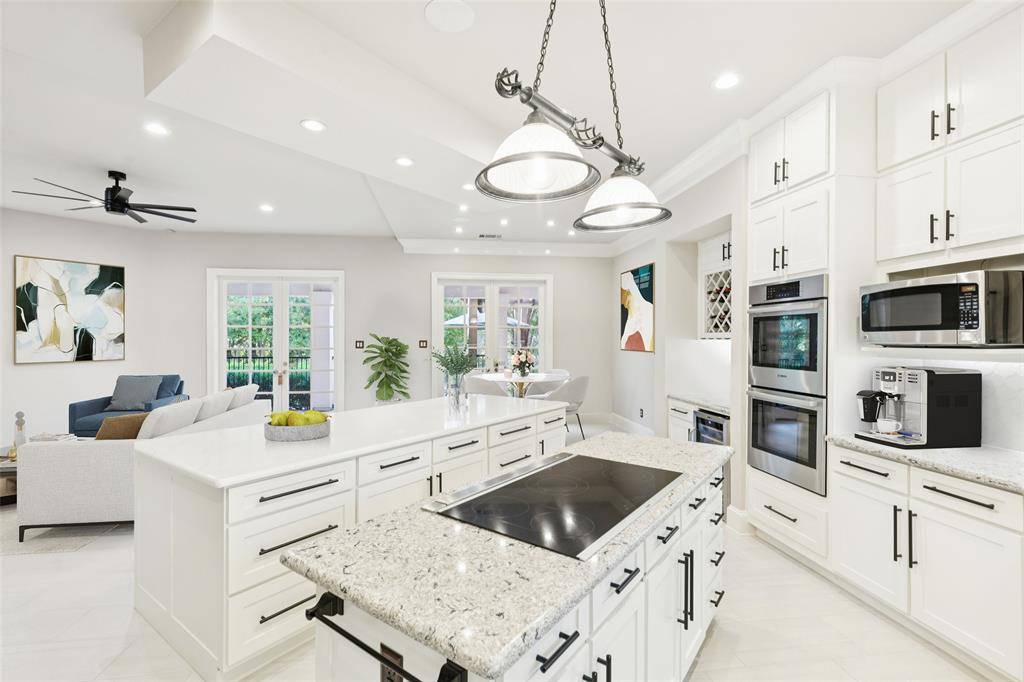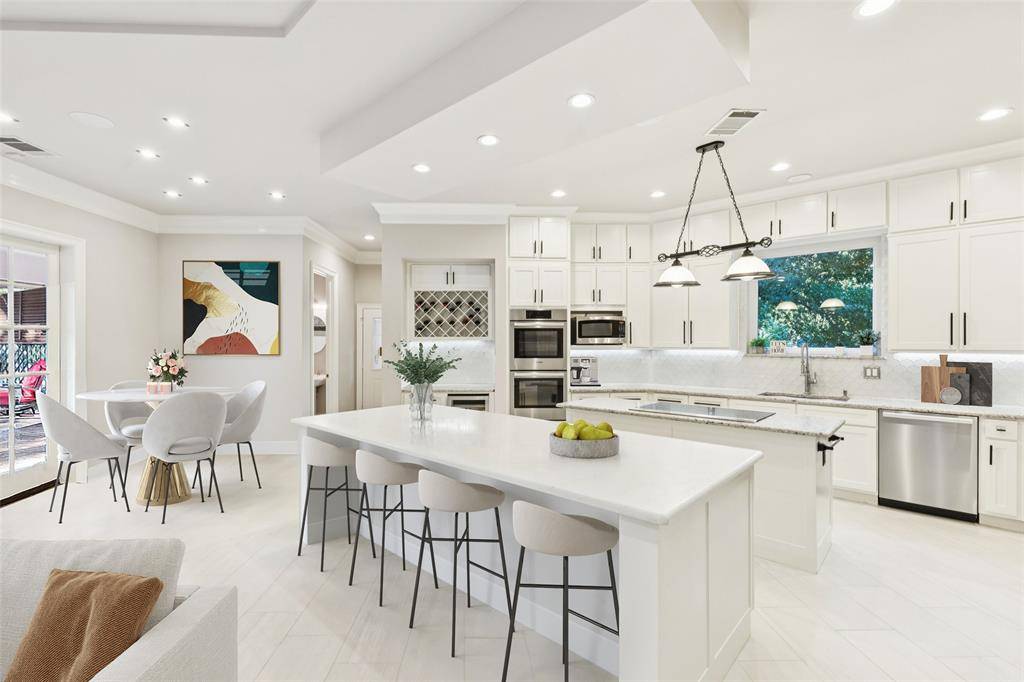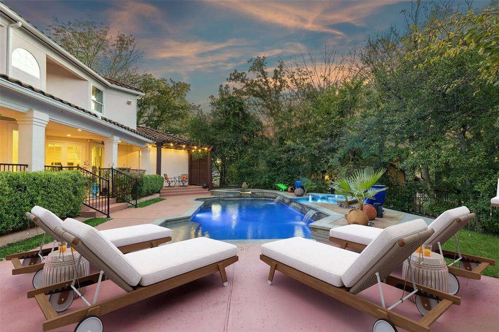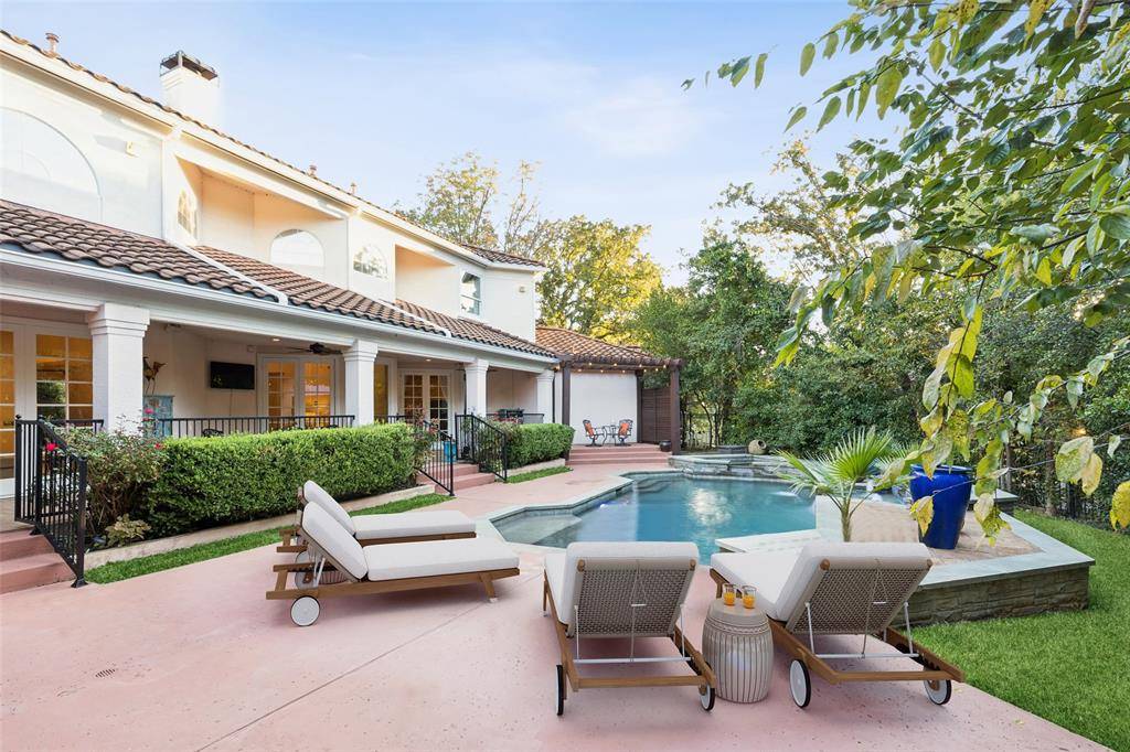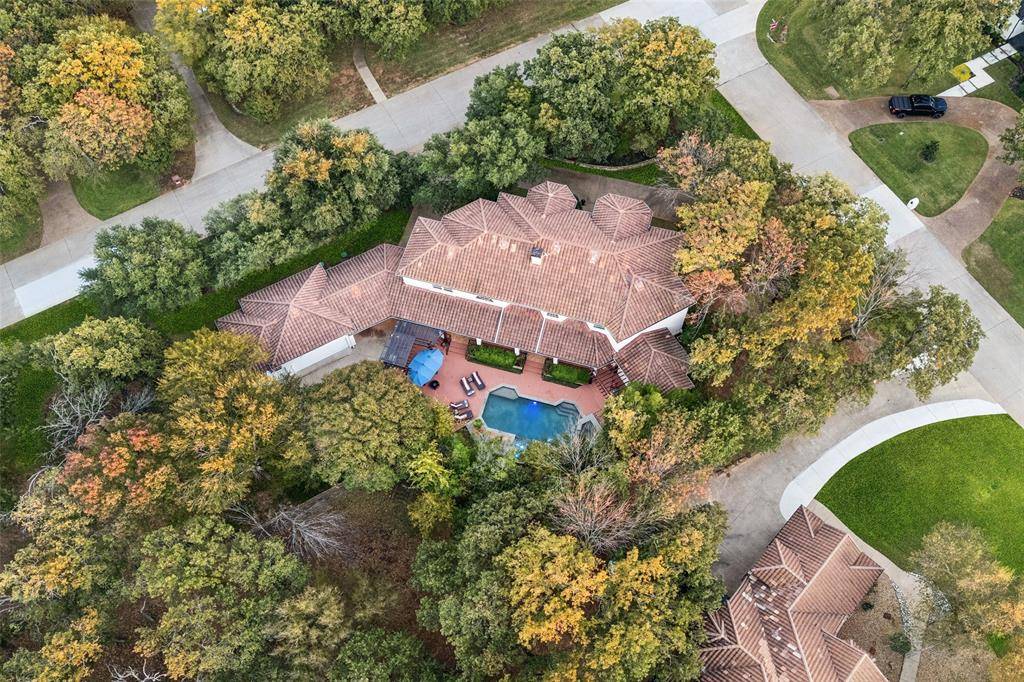 Where Modern Sophistication Meets Lakeside Serenity! Welcome to your private sanctuary in The Peninsula at Twin Coves, where timeless design, cutting-edge updates, and natural beauty unite in an extraordinary expression of luxury. This reimagined Flower Mound estate spans over one acre of pristine, tree-canopied grounds and offers 5,100+ square feet of ultra-refined living. A grand entry reveals soaring ceilings, walls of glass, and panoramic views of the resort-style pool and lush landscape, while custom finishes and curated lighting set a tone of effortless elegance. The private study off the main hall provides the perfect space for productivity or quiet reflection. At the heart of the home, the epicurean kitchen stuns with dual quartz islands, a built-in wine bar, commercial-grade refrigerator, dual ovens, beverage fridge, and an expansive walk-in pantry, blending form and function for the most discerning chef. The primary suite is a true retreat, offering a spa-inspired bath, dual walk-in closets, and direct access to the patio and pool for morning serenity or evening relaxation. Each guest suite is equally impressive, featuring custom en-suite baths and boutique-style closets, while multiple lofts and flexible living spaces cater to every lifestyle, whether for fitness, reading, media, or play. Step outdoors and experience your personal paradise: a resort-style pool, two pergolas, covered patio with full outdoor kitchen and bar, and a private outdoor shower, all surrounded by mature trees that create a secluded, tranquil escape. A circular drive, generous carport, and 3 car garage complete this exceptional property. Moments from Lake Grapevine, upscale dining, boutique shopping, and top-rated LISD schools, this estate embodies the pinnacle of modern luxury, where every day feels like a five-star getaway.