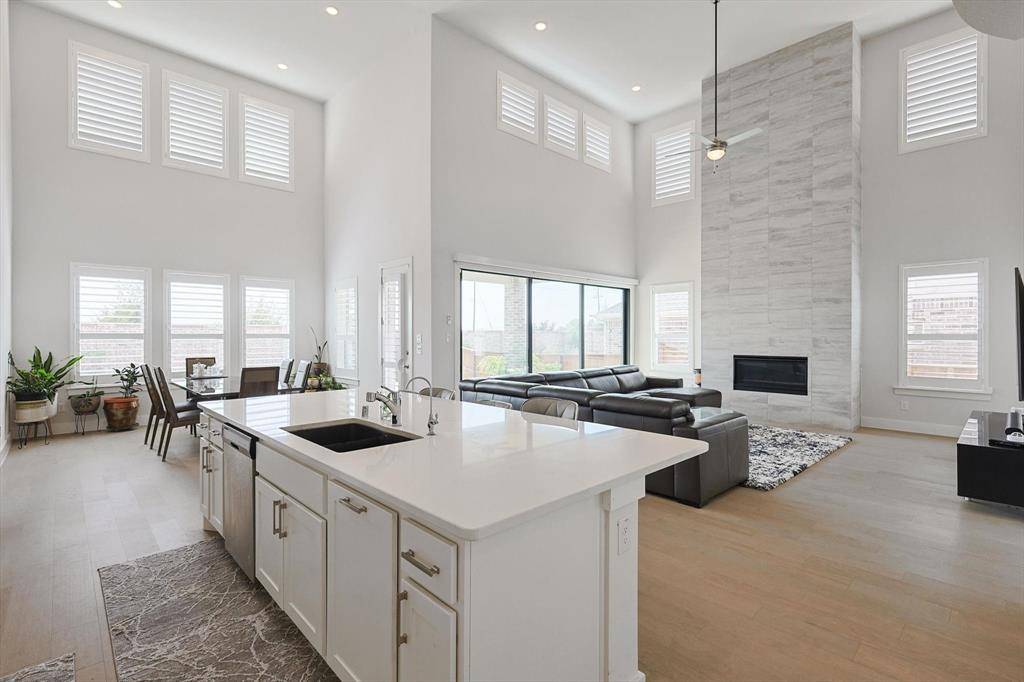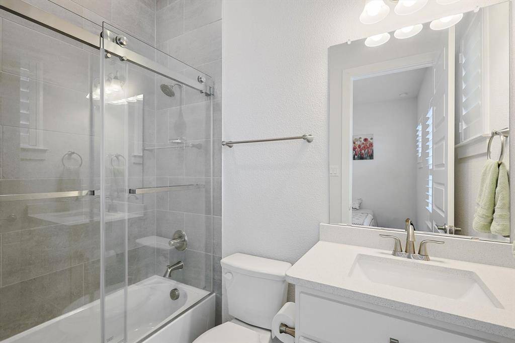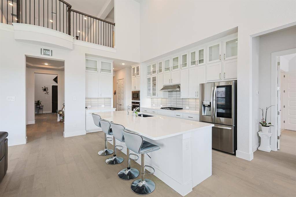 Introducing a stunning luxury 2-story home, constructed 2021, featuring 5 bedrms, 4.5 baths, and 2-car garage. The family rm boasts a beautiful fireplace, accompanied by a study, flex room, and an expansive chef-inspired kitchen. The kitchen showcases white stacked cabinets, quartz c-tops, ample space, and a walk-in pantry. In addition, sellers have installed a water purifier and rev. osmosis for safe drinking, cooking, showers and cleaning. Elegance radiates thru out with Plantation Shutters gracing every room. The primary suite is extended, offering a freestanding tub, frameless mud-set shower, dual vanities, and spacious his&hers walk-in closets. With a secondary bedrm and bath dwnstairs, plus 3 generously sized bedrms, 2 full baths, a loft, and gm room upstairs, this home caters to various needs. Custom sliding window doors lead to a covered patio, seamlessly connecting indoor and outdoor living. Enjoy community pools and proximity to schools, greenways, parks, and a golf course.