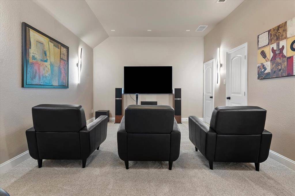 The upper level features an impressive game room, a dedicated media room complete with surround sound, and an additional bedroom with full bath, delivering flexible spaces designed for relaxation, entertainment, and refined living.