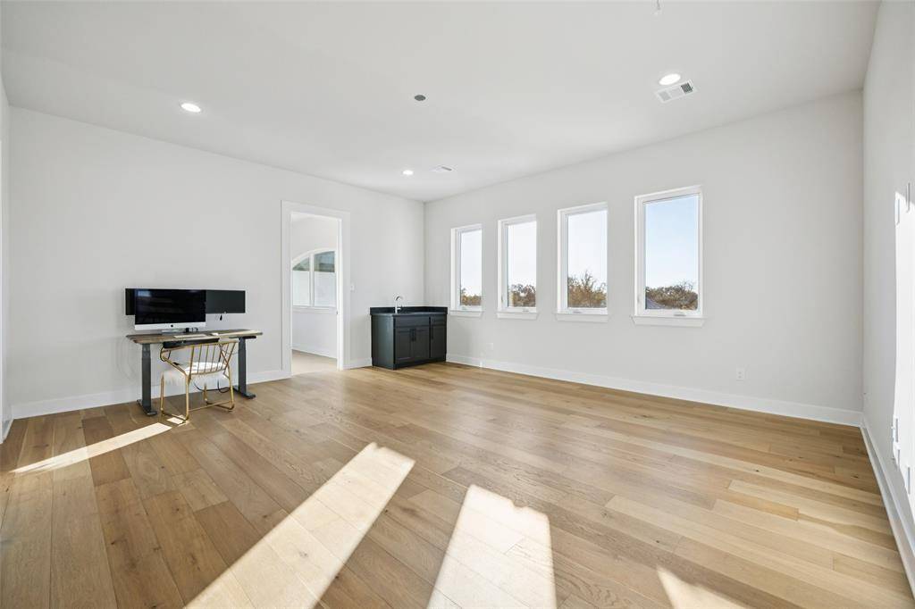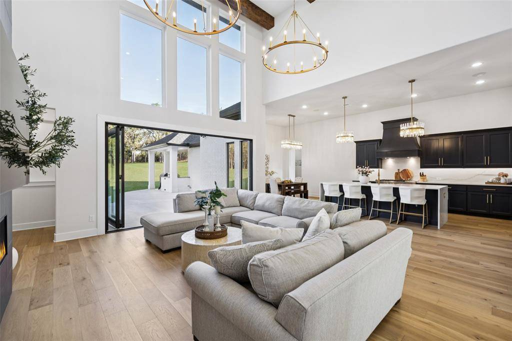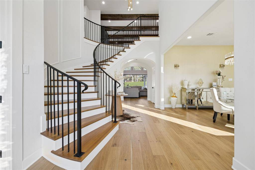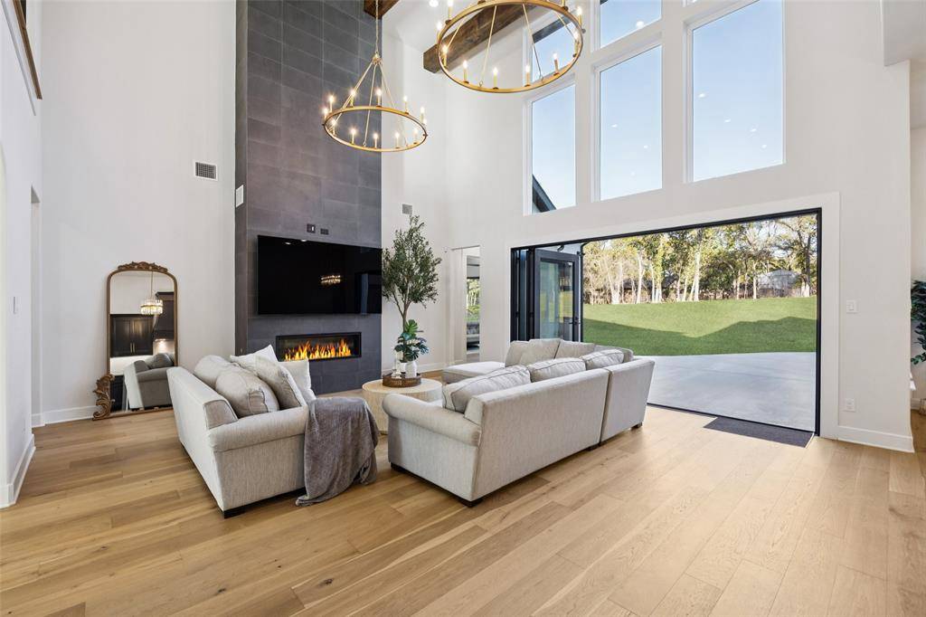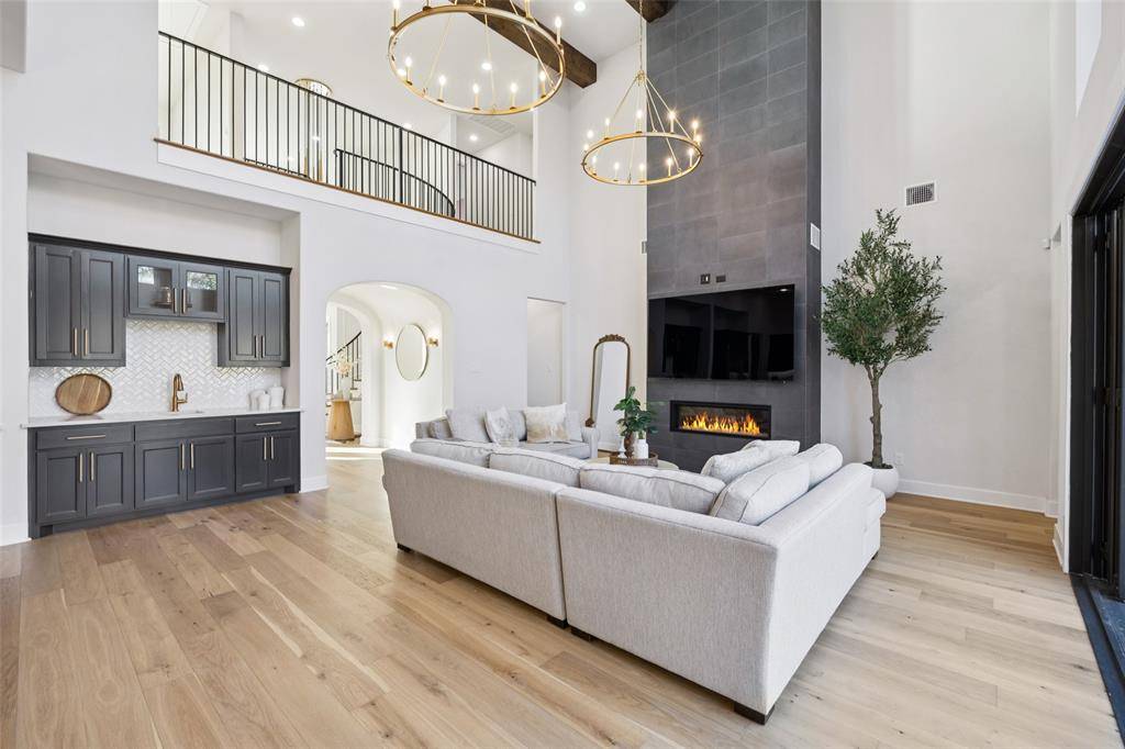 SELLERS ARE OFFERING A 50K BUYERS INCENTIVE w-acceptable offer by Feb 1. Experience an extraordinary level of design & livability in this custom-built estate perfectly crafted for multi-generational living. Nestled on a serene, tree-lined 0.69-acre lot adorned w-native post oaks, manicured landscaping & elegant Taylor & pom-pom junipers. A grand porte-cochere & motor court set the stage for a dramatic entrance through custom double iron doors, opening to a bright, open floor plan filled w-natural light. Great room impresses w-dual designer chandeliers, a striking linear FP soaring to 20 ft & seamless flow into the gourmet kitchen. Every culinary detail has been considered, from farmhouse sinks in both kitchens & the laundry room to commercial-grade vent systems, custom hood design + a dedicated prep kitchen ideal for entertaining. Each of the 5 ensuite bedrooms offers elevated comfort, featuring WI showers + vessel sinks. Two secondary suites on the 1st floor make this home ideal for multi-generational living, while powder baths on both levels add convenience. Luxurious primary suite features LED backlit mirrors, a spa-inspired bath & pre-wiring for remote-controlled blinds. Designed for connection & entertainment, the home includes a fully equipped media rm w-7.1 surround sound, built-in speakers in the kitchen & covered patio + an outdoor grill perfect for alfresco dining. Step onto the temperature-controlled upstairs balcony to enjoy peaceful sunset views. Technology & comfort go hand in hand w-smart-home automation controlling lighting, HVAC, irrigation & surveillance. Every room is equipped w-Ethernet & Hi-Lo connections, volume control ports + a security system w-multiple keypad stations. Additional highlights include an EV car charger in the garage + beautifully curated outdoor lighting to accentuate the architecture. This exceptional residence stands among Flower Mound's most distinguished estates, crafted for those who expect nothing less than perfection.