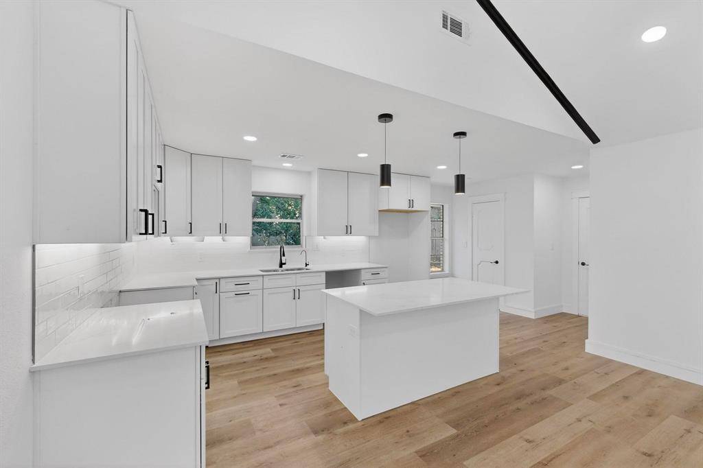 Beautifully renovated one-story home in the heart of Denton offering 4 bedrooms and 3 full bathrooms with a bright, open layout designed for comfortable living. Vaulted ceilings create an airy feel in the main living space, complemented by stylish designer finishes and durable luxury flooring throughout—no carpet. The flexible floor plan includes a spacious living room and two dining areas, perfect for everyday living and entertaining. A Jack-and-Jill bathroom adds convenience between secondary bedrooms, while one bedroom can easily function as a home office, studio, or guest room. Brand-new appliances have been installed (not pictured). Step outside to a large backyard with plenty of space for relaxing, gardening, or hosting gatherings. Ideally located near universities, shopping, dining, and major amenities, this home offers both convenience and versatility. Move-in ready and a great opportunity for families, investors, or shared living arrangements (buyer to verify use). Schedule your showing today!