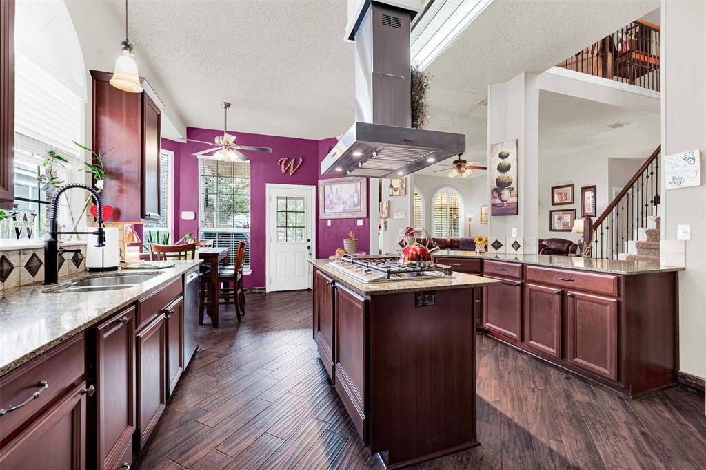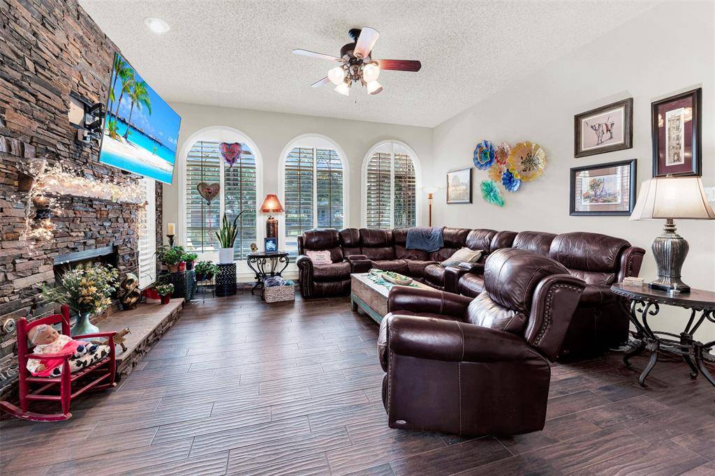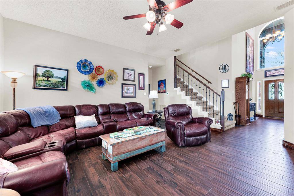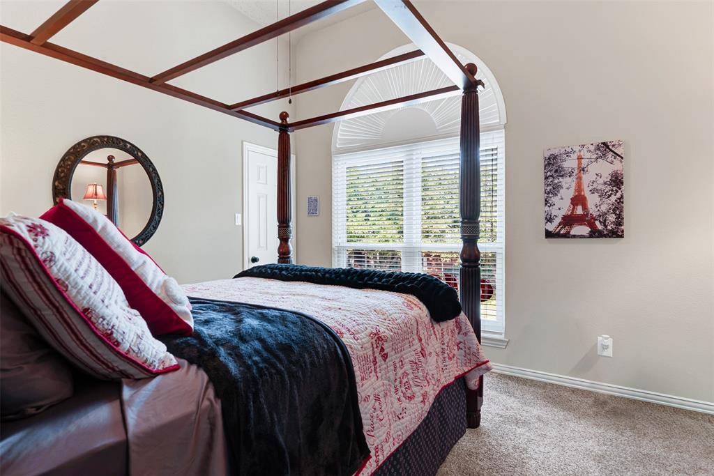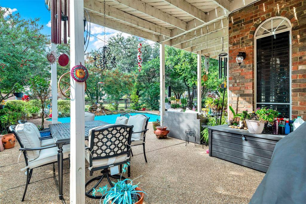 for both. Walk into a foyer that looks straight back into a garden oasis and all the greatness in between! Stainless steel updated kitchen with great work flow, storage and appliances, featuring a beautiful ceiling mount draft unit. Kitchen is open to den that has gorgeous stacked stone floor to ceiling fireplace with hearth. Walk out to the landscaped golf course lot backyard with views of a refreshing waterfall pool, covered patio, and professionally installed pet turf. Large primary bedroom and ensuite bath is downstairs. Primary bath has a huge walk in shower, furniture quality cabinetry and dual sinks with walk in closet. Upstairs has three more bedrooms with dedicated updated bath, and a HIDDEN HUGE WALK IN CLOSET for holiday storage, toys, whatever you need it for! The open game room area is perfect for relaxation time and has a door out onto a large second story deck overlooking the gorgeous backyard. This home is located on the Frisco Farms Golf Course between holes 6 and 7. Great location for not getting those wayward golf balls in your backyard. Home has professionally installed leased solar panels for energy savings. Balance of lease is negotiable with Seller. Solar lease is assumable and warranty is transferable. The neighborhood has parks and playgrounds, elementary school within, and is close to restaurants, shopping and major highways. Refrigerator and washer and dryer are negotiable. Information provided is deemed reliable, but is not guaranteed and should be independently verified. Buyer and or Agent to verify measurements, schools, & tax, etc.