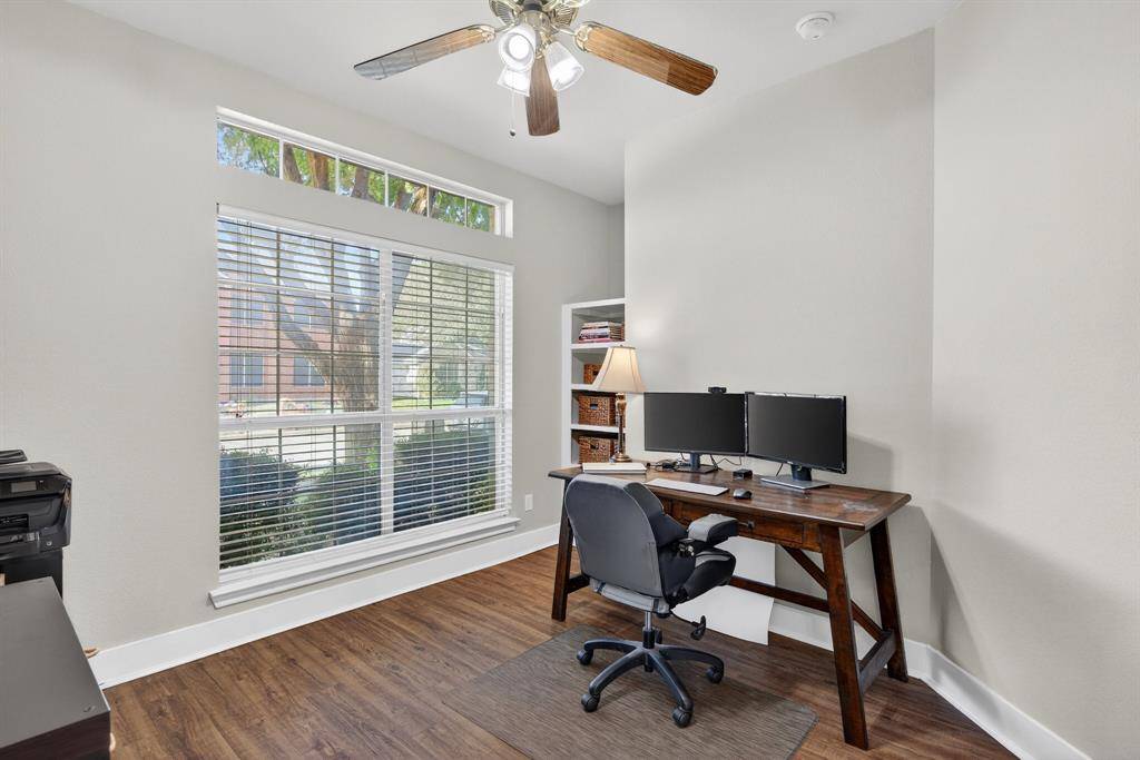 The private downstairs primary suite provides a peaceful retreat with dual vanities, a spa tub, and a separate shower. A convenient full bath on the main level is perfect for guests. A large office can also be used as a 5th bedroom or guest room. Downstairs AC was replaced in 2025.