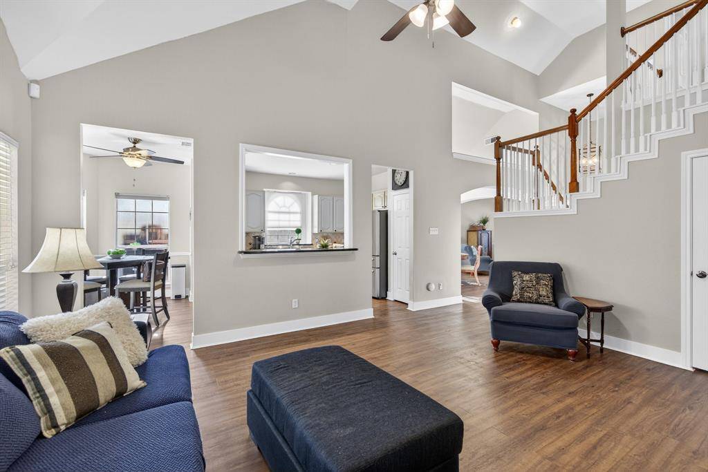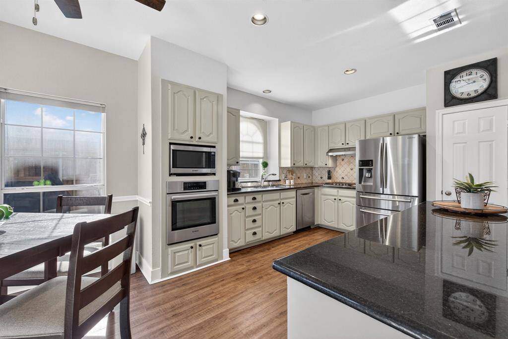 Step into this beautiful, freshly painted home where soaring ceilings welcome you inside. The bright family room is filled with natural light and features a cozy gas fireplace with views of the backyard. The eat-in kitchen offers granite counters, stainless steel appliances, and a welcoming layout tailored to everyday dining.
