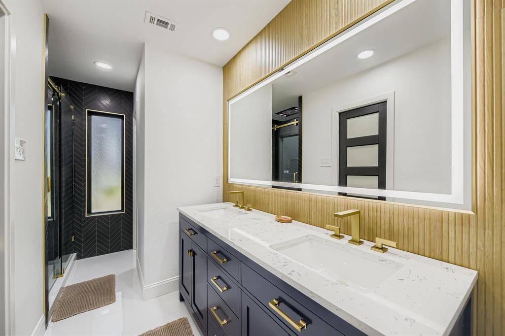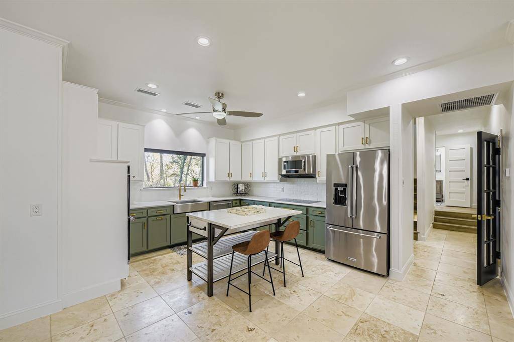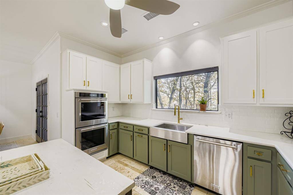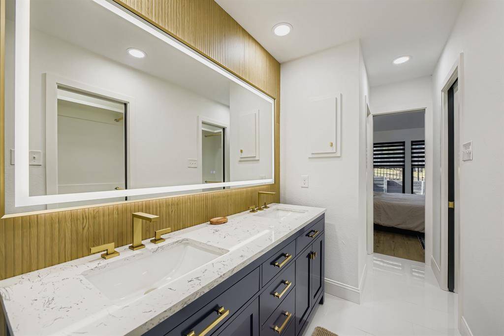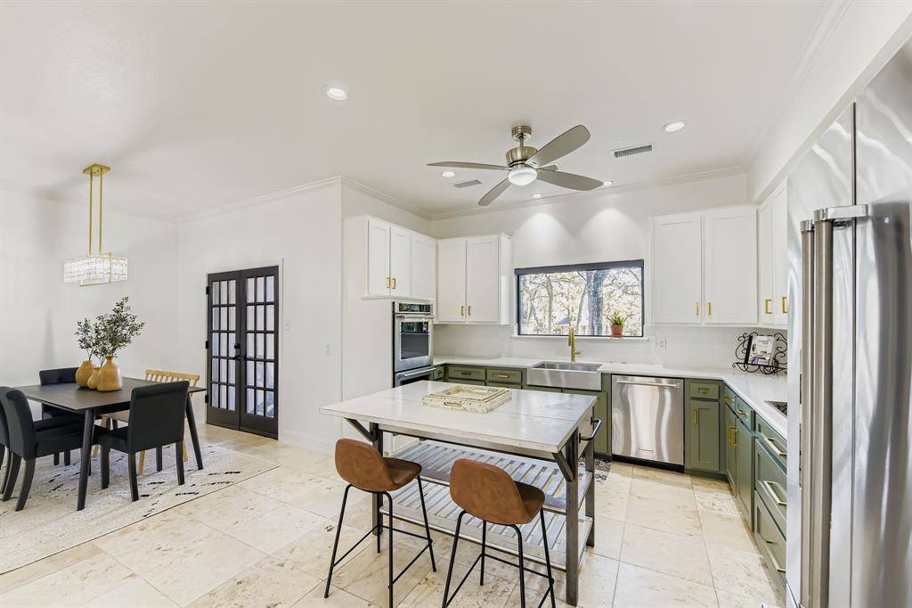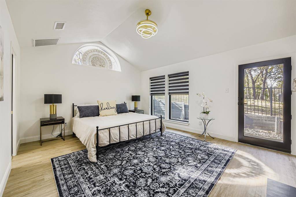 Newly renovated modern contemporary home situated on nearly two acres in Argyle ISD, offering exceptional privacy, peace, and quiet. A long driveway leads to this thoughtfully redesigned residence, featuring brushed gold-toned finishes, clean lines, and a striking see-through fireplace connecting the dining room with wet bar to the master bedroom, creating a unique and elegant focal point. Abundant natural light fills the home, enhancing its modern aesthetic and connection to the outdoors. French doors open to a charming outdoor breakfast nook, perfect for enjoying morning coffee while surrounded by serene natural views. The expansive, tranquil setting provides a rare opportunity to enjoy refined contemporary living with the space and seclusion of acreage.