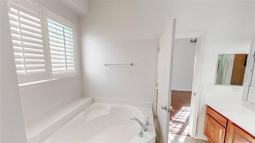 Welcome to 4512 Scott Drive in the heart of Flower Mound! This beautifully maintained two-story home offers a thoughtful layout, stylish updates, and an exceptional location in a desirable neighborhood with highly regarded schools. Step inside to find new wood flooring in the entry and dining room, seamlessly matching the living area and front bedroom, and no carpet throughout the home except in closets and on the stairs. The open living room features soaring ceilings, creating a bright and airy space ideal for everyday living and entertaining. The kitchen is both functional and inviting, complete with granite countertops, a center island, breakfast nook, and a butler's pantry that conveniently connects to the laundry room—perfect for added storage and flow. The primary suite is located downstairs and serves as a relaxing retreat with a walk-in shower, walk-in closet, and large windows overlooking the expansive backyard. A second bedroom downstairs makes an ideal guest room or home office. Upstairs, you'll find a large game room with a built-in desk office nook, along with two spacious bedrooms, each with its own bathroom. One of these bedrooms functions as a second primary suite, offering exceptional space and privacy. Outside, enjoy a massive grassy backyard with a covered patio, perfect for entertaining, play, or relaxing evenings. Add in a two-car garage, great curb appeal, and a welcoming neighborhood, and this home truly checks all the boxes. Ideally located near parks, shopping, dining, and top-rated schools, this Flower Mound home is a rare find—don't miss your opportunity to make it yours!