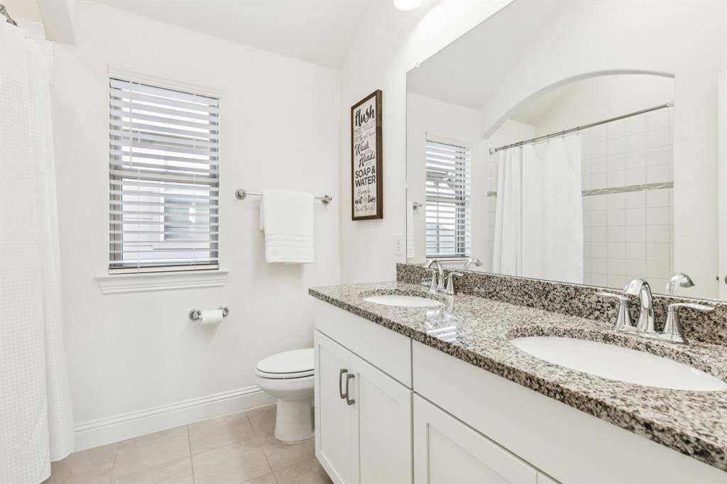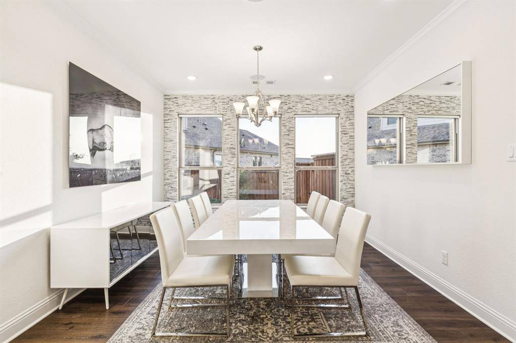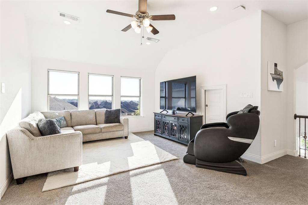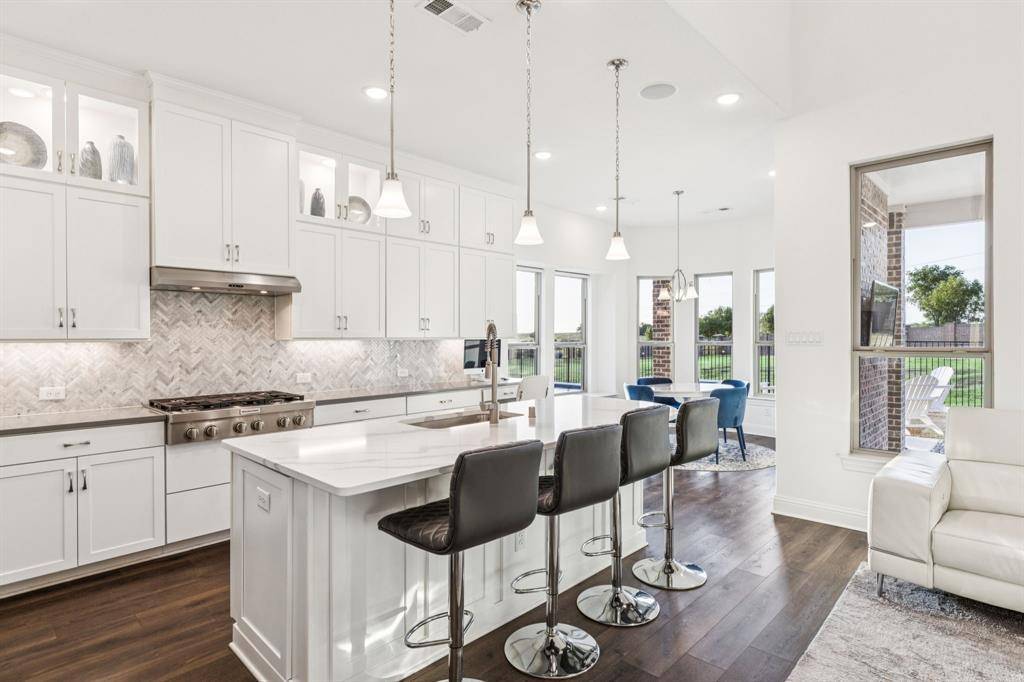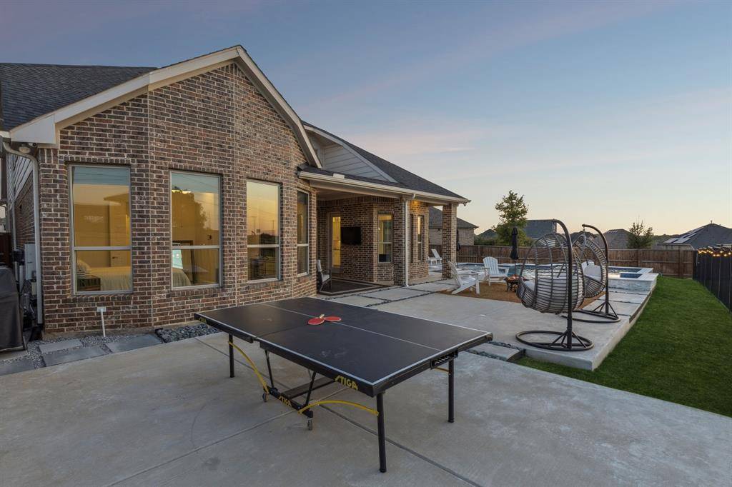 Beautiful designed 2019 built home, situated on a cul-de-sac in the coveted Trailwood community, served by top-rated Argyle ISD, complete with a resort-style pool. Bright, open-concept floor plan showcases soaring ceilings, wide-plank wood floors, and a stunning wall of windows that flood the home with natural light. The gourmet kitchen is the heart of the home, featuring shaker-style cabinetry, a designer backsplash, oversized island, and commercial-grade gas cooktop, ideal for both everyday living and entertaining. The thoughtfully designed main level includes a private study, a luxurious primary suite with spa-inspired bath, and a guest suite downstairs, perfect for multi-generational living. Upstairs, enjoy a spacious game room, dedicated media room, and two additional bedrooms, each with its own full bath, offering exceptional privacy and comfort. Step outside to a backyard retreat with a covered patio, resort-style pool with outdoor living space, and beautifully landscaped grounds backing to a greenbelt. Conveniently located near shopping, dining, and community amenities, this home delivers an exceptional blend of style, functionality, and location.