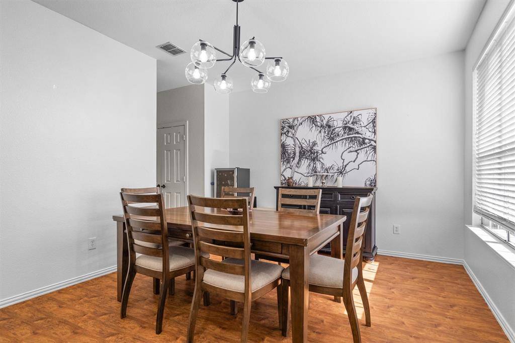 Welcome home to this beautifully designed single-family residence offering 4 bedrooms and 2 full bathrooms with a desirable split-bedroom layout for added privacy. The open-concept floor plan is warm and inviting, highlighted by a spacious living room featuring a cozy corner fireplace, perfect for relaxing or gathering with family and friends. The kitchen truly serves as the heart of the home, offering ample cabinet and counter space, a kitchen island, large pantry, and an electric range, making it ideal for everyday living and entertaining alike. Adjacent to the kitchen, a separate formal dining room provides an elegant space for hosting dinners, celebrations, or can easily be adapted to suit your lifestyle needs—such as a home office or flex space. Situated in a prime location, this home enjoys close proximity to nearby parks and a scenic pond, while also offering easy access to I-35. You'll appreciate the convenience of nearby dining, shopping, and entertainment options, all just minutes away. This home blends comfort, functionality, and location—making it a wonderful place to call home!