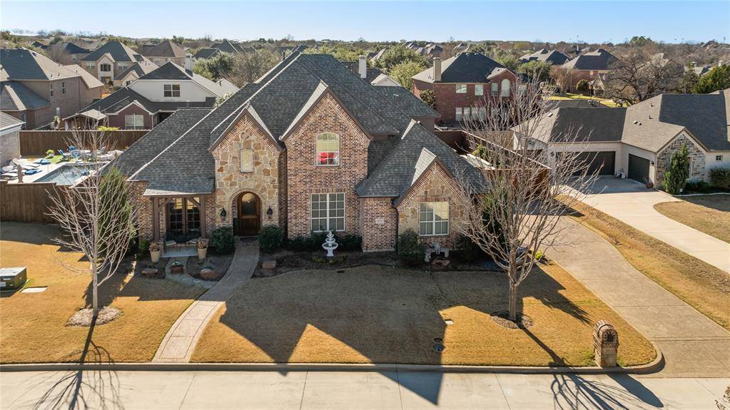 Welcome to this meticulously maintained custom Victor Meyer luxury home in the exclusive Highland Oaks subdivision of Highland Village. With beautiful curb appeal and thoughtful design throughout, this elegant two-story residence offers 4,195 sq ft of refined living! The heart of the home is a chef's kitchen featuring granite countertops, Bosch stainless steel appliances, 5-burner gas cooktop, double ovens, an oversized walk-in pantry perfect for appliances and bulk storage, plus a built-in planning center and butler's pantry. Rich hand-scraped wood floors, crown molding, and high ceilings flow seamlessly into the inviting living area with wood-beamed ceiling, custom built-ins, and a striking floor-to-ceiling stone fireplace. The spacious primary suite is a true retreat with a tray ceiling, dual vanities, jetted tub, walk-in shower with dual shower heads, huge walk-in closet, recently added carpet, and direct access to the laundry room. A second suite on the main floor is wheelchair accessible and features hardwood flooring, a full bath, and generous walk-in closet—ideal for guests or multi-gen living. Upstairs offers two more oversized bedrooms, updated carpet, a large game room, and a media room ready for entertaining. Step outside to your private backyard oasis to include a new saltwater pool with digital controls added in 2025, extended patio, and covered outdoor living area. In addition to the NEW Venture Custom Pool with Hayward Omni Logic and custom landscape lighting, enjoy the 7-person Michael Phelps MasterSpa Legend LSX 700 for all your relaxing needs! Additional highlights include: a large utility room with built-in cabinets, sink, freezer space, and doggie door; 3-car garage; beautifully landscaped 0.276-acre lot with sprinkler system; access to scenic trails and community amenities. Current owners also added tint on windows and upgraded the HVAC to variable speed condensers & coils. Close to dining, shopping, & commuter routes.