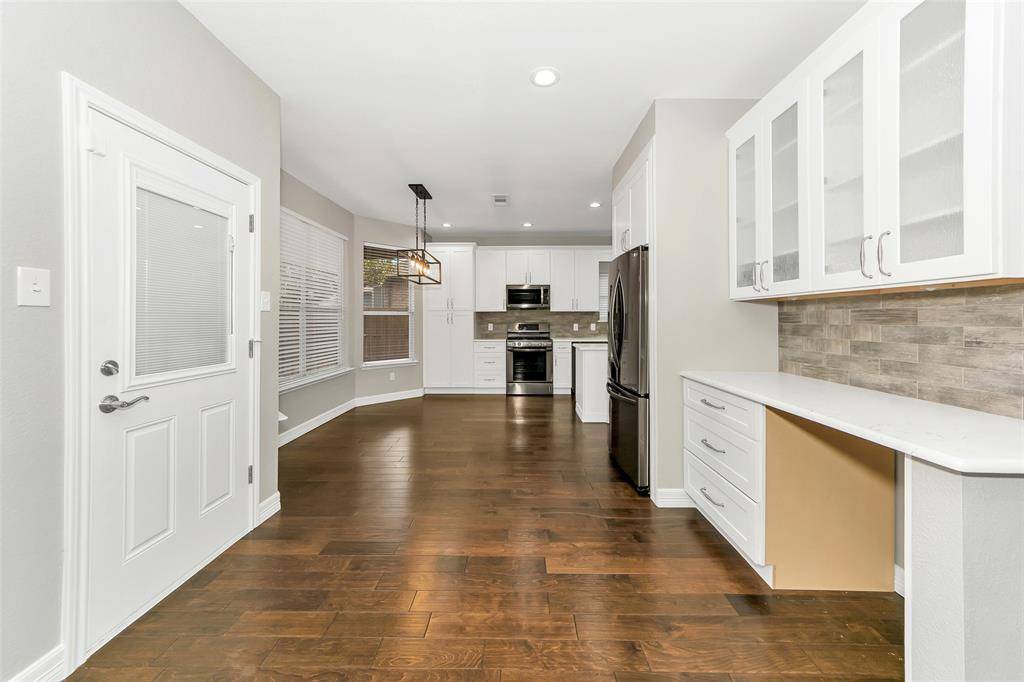 BEAUTIFULLY UPDATED HOME IN A PRIME LEWISVILLE LOCATION WITH NO HOA! * THIS LOVELY HOME IN MATURE TREED NEIGHBORHOOD HAS THE PERFECT LOCATION CLOSE TO I 35E, LAKE LEWISVILLE, LEWISVILLE & HIGHLAND VILLAGE SHOPPING.* BACKING UP TO A NATURE, BIKE, WALKING TRAIL THIS HOME HAS A SERENE SETTING YOU WILL APPRECIATE.* NEW TOTAL INTERIOR PAINT & EXTERIOR PAINTED 2 YEARS AGO.* NEW ROOF 2022. *UPDATES INCLUDE: AMAZING UPDATED KITCHEN WITH EXTENSIVE AMOUNT OF CUSTOM CABINETRY, GORGEOUS NATURAL STONE LOOK COUNTERTOPS, GRANITE COMPOSITE SINK, COOKS WILL LOVE THE LG GAS RANGE AND LG FRIDGE INCLUDED. BUILT IN KITCHEN DESK WITH WINE FRIDGE AREA. * SPACIOUS FAMILY ROOM WITH GAS FIREPLACE.* PRIVATE PRIMARY SUITE ON 2ND FLOOR WITH REMODELED BATH, NEW CABINETRY, LUXURY SHOWER, COMMODE, TUB & FLOORING. LUXURY FEEL FOR THIS PRICE RANGE. *SECONDARY BEDROOMS ARE GENEROUSLY SIZED WITH EXCELLENT CLOSET STORAGE & LINEN CLOSETS. *STEP INTO YOUR SPACIOUS PRIVATE OUTDOOR OASIS LIVING SPACE WHICH HAS A LARGE CUSTOM COVERED 19 X 20 PATIO WITH STAMPED CONCRETE, OUTDOOR KITCHEN WITH GRILL, FRIDGE, STORAGE, TV & TV CABINET. *ROLL DOWN SUN SAHDE *EMERGENCY GENERAC BRAND GENERATOR MEANS YOU WILL NEVER BE WITHOUT ELECTRICITY. *TANKLESS WATER HEATER. *LARGE LAUNDRY WITH FREEZER & SINK.* FLEX ROOM WITH BARN DOORS THAT CAN BE A DINING, MEDIA ROOM, HOME OFFICE OR WORK OUT AREA. * A RARE COMBINATION OF SUPERB LOCATION AND THOUGHTFUL UPDATES.* IF YOU NEED TO MOVE SOON THIS HOME IS READY NOW!