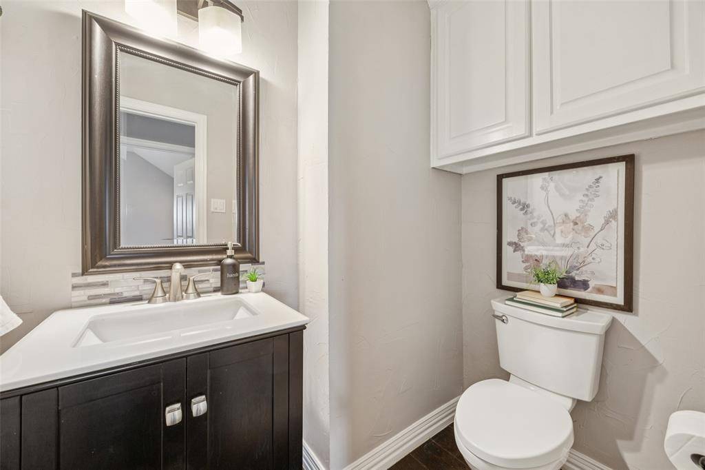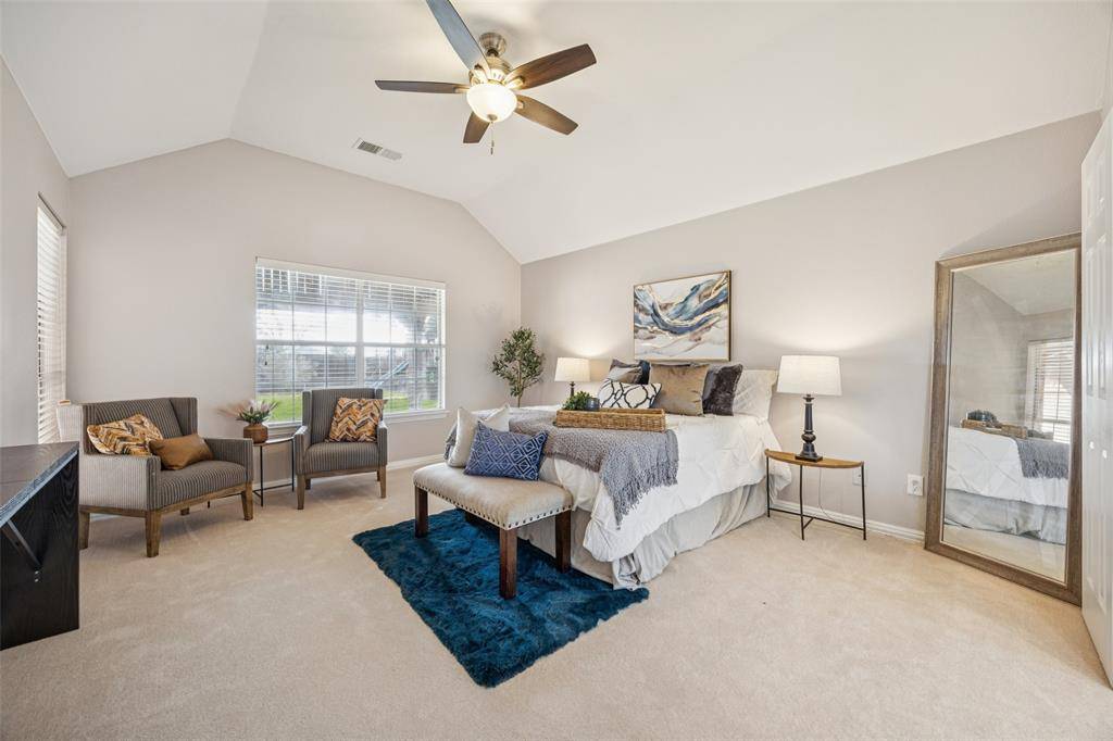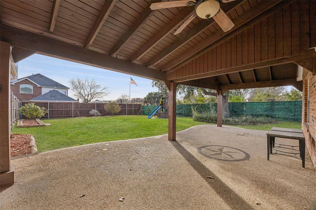 Stunning 3-bedroom, 2.5-bath Flower Mound home situated on a spacious 0.28-acre corner lot in highly sought-after LISD school zones. Meticulously maintained with exceptional curb appeal, this home warmly welcomes you with a grand foyer flanked by a bright formal living room with and an elegant formal dining room that connects directly to the kitchen. The inviting family room sits at the heart of the home and features a stately fireplace, built-in shelving, and a wall of windows that fill the space with natural light. The spacious kitchen is designed for both comfort and functionality, offering a center island, Corian countertops, built-in appliances, a breakfast bar with seating, a built-in desk, and a sunny breakfast nook overlooking the backyard. The serene downstairs primary suite provides a private retreat with a spa-like ensuite bath complete with dual sinks, a separate shower, a large soaking tub, and a walk-in closet. Upstairs, you'll find generously sized secondary bedrooms, a full bath, and a flexible game room that can easily adapt to your needs. Enjoy outdoor living in the large, private backyard featuring a custom covered patio perfect for entertaining, plus an additional storage shed tucked away along the side yard. An oversized garage and abundant storage throughout add to the home's appeal. Recent updates include a new roof and updated sprinkler heads and pipes. Ideally located with easy access to shopping, dining, and everyday conveniences, this home offers plenty of space to make it your own. 3D tour available online!
