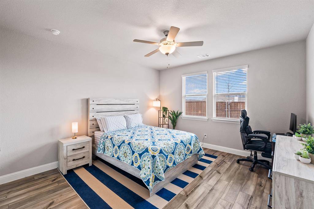 Like-new, energy-efficient home—only 2 years old—available for move-in! The primary suite features an impressive walk-in closet and a private retreat feel. Spacious secondary bedrooms are perfect for family, guests, or a home office. The open-concept living area, complete with a cozy fireplace, flows effortlessly to a covered back patio—ideal for relaxing or entertaining. Enjoy summer weekends just minutes from Lake Lewisville, with a prime central location offering easy access to I-35, Argyle, Flower Mound, and Denton. The community offers a resort-style pool, children's playground, and scenic walking trails. Built with innovative, energy-efficient features, this home delivers lower utility costs, enhanced comfort, and peace of mind—truly move-in ready and better than new.