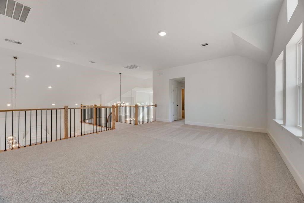 New Grand Home in Walton Ridge - JUST COMPLETED - Premium homesite near Agora Park. Spacious floor plan design with stone & cedar exterior & modern front door. Custom features include Full oak staircase has wrought iron balusters, 8 foot interior doors & wood floors. 2 Bedrooms Downstairs. Guest Suite can also be a home office. Upstairs Game Room & Media Room wired for surround sound. Vaulted Family Room has a stone fireplace & opens to kitchen. Open Concept kitchen has Shaker cabinets, Quartzite slab tops, deco backsplash, stainless steel appliances, 5 burner gas cooktop w custom vent hood cabinet, trash can drawer, island with pendant lights, pots & pans drawers, & Butlers Pantry. Primary Bath has free standing tub, glass tiled shower, & separate vanities. Security system & sprinkler system. All new construction with warranties. Energy Star partner with Tankless water heater & radiant barrier roof