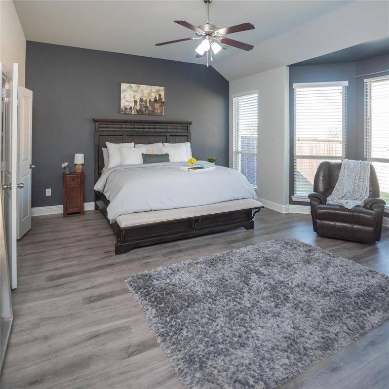 The light-filled floor plan features soaring ceilings, hardwood floors, and a designer kitchen with quartz counters, stainless-steel appliances, and a large island perfect for gathering. The primary suite is downstairs with a spa-like bath, dual vanities, and a walk-in closet. Upstairs, you'll find three spacious bedrooms, two full baths, and a generous game or media room ideal for family nights or guests.
