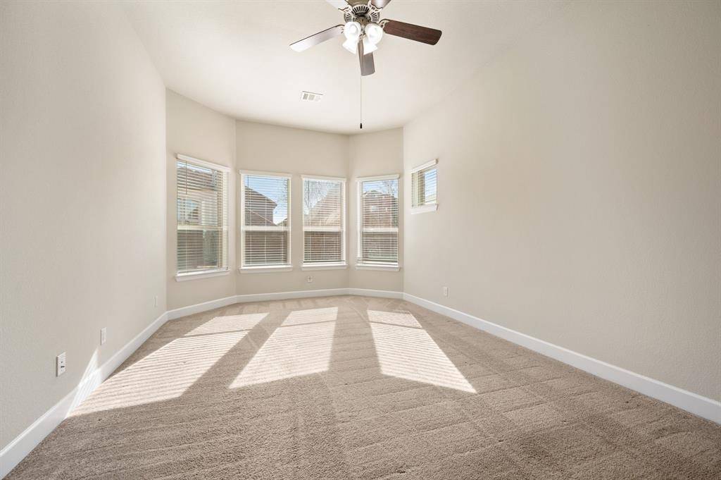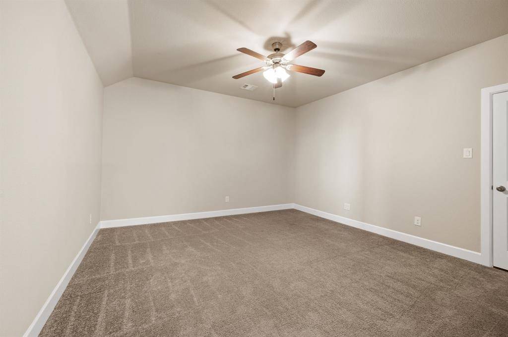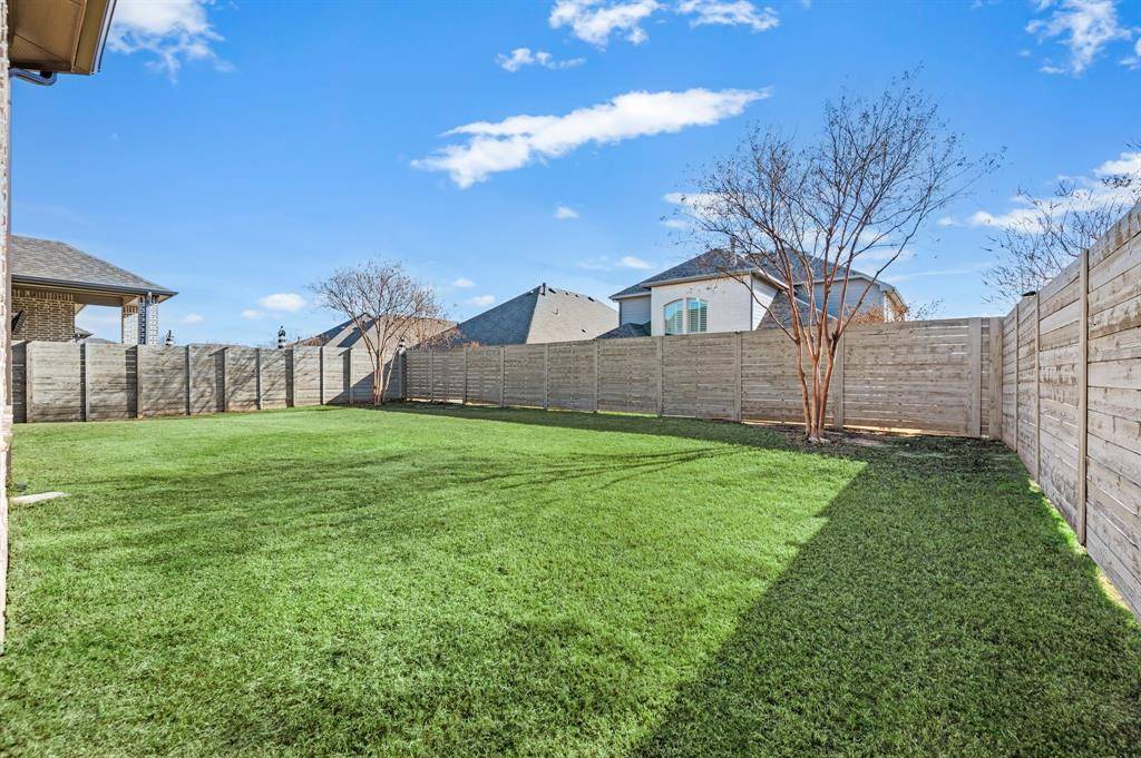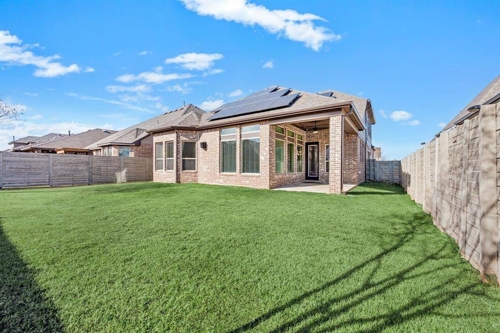 Argyle ISD living with the space to work, play, and actually enjoy being home, plus paid-off solar. This stunning 4-bedroom, 3-bath home has a layout that truly works for real life. The open kitchen, dining, and living space is the heart of the home, featuring a large island, gas range, and beautiful natural light, perfect for everyday living and entertaining. A private French-door office sits just off the entry, ideal for working from home or quiet study. The primary suite is tucked away at the back of the home for privacy and includes bay windows, dual sinks, soaking tub, separate walk-in shower, and a spacious closet. A downstairs guest bedroom with full bath offers the perfect setup for visitors or multi-generational living. Upstairs you'll find a large game room, a dedicated media room for movie nights, and two oversized bedrooms with a shared full bath. Additional features include a separate laundry room, mudroom off the garage, two-car garage with built-in fishing rod storage, large driveway, and generous attic storage. Major updates include a new roof (Aug 2025), HVAC replaced in 2025, tankless water heater, fresh interior paint (Dec 2025), and paid-off solar panels for ongoing utility savings. The home was also built with extra insulation and energy-efficient windows for comfort year-round. Enjoy a covered backyard patio with room to expand your outdoor living space. Located directly across from the school with no homes in front for added privacy. Set in a master-planned community with multiple parks, pools, fishing ponds, kayak area, gyms, trails, dog parks, resident events, on-site HOA office, and cable + internet included.