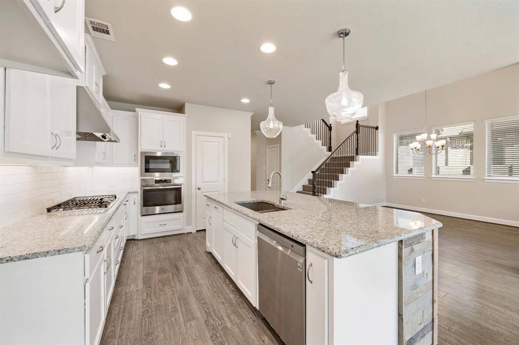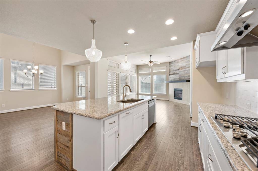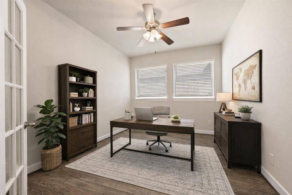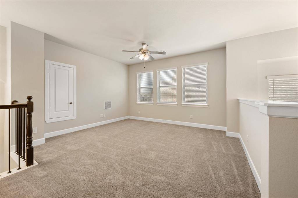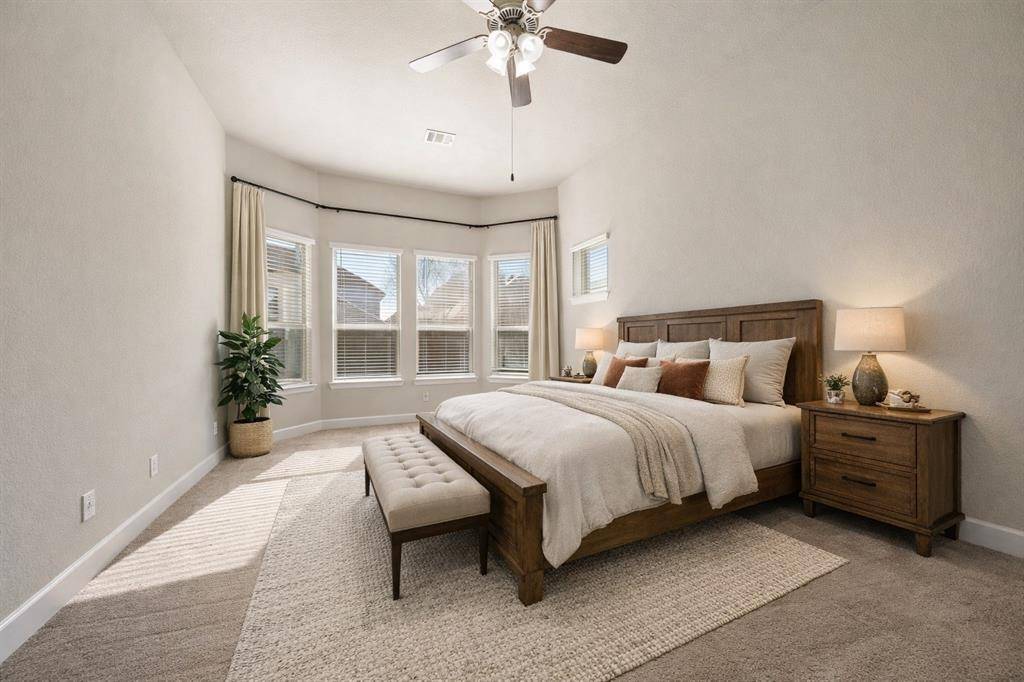 Argyle ISD living with the space to work, play, and actually enjoy being home, plus paid-off solar. This stunning 4-bedroom, 3-bath home has a layout that truly works for real life. The open kitchen, dining, and living space is the heart of the home, featuring a large island, gas range, and beautiful natural light, perfect for everyday living and entertaining. A private French-door office sits just off the entry, ideal for working from home or quiet study. The primary suite is tucked away at the back of the home for privacy and includes bay windows, dual sinks, soaking tub, separate walk-in shower, and a spacious closet. A downstairs guest bedroom with full bath offers the perfect setup for visitors or multi-generational living. Upstairs you'll find a large game room, a dedicated media room for movie nights, and two oversized bedrooms with a shared full bath. Additional features include a separate laundry room, mudroom off the garage, two-car garage with built-in fishing rod storage, large driveway, and generous attic storage. Major updates include a new roof (Aug 2025), HVAC replaced in 2025, tankless water heater, fresh interior paint (Dec 2025), and paid-off solar panels for ongoing utility savings. The home was also built with extra insulation and energy-efficient windows for comfort year-round. Enjoy a covered backyard patio with room to expand your outdoor living space. Located directly across from the school with no homes in front for added privacy. Set in a master-planned community with multiple parks, pools, fishing ponds, kayak area, gyms, trails, dog parks, resident events, on-site HOA office, and cable + internet included.