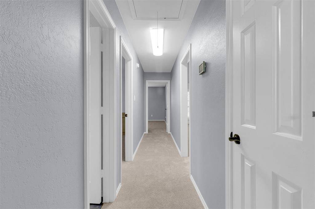 Minutes from Lewisville Lake and zoned for Marcus Flower Mound High School, welcome to this beautiful single-story home in the highly sought-after Village Estates of Highland Village! New carpet throughout, plantation shutters in all but a couple rooms, remodeled secondary bathroom, newer roof, AC Unit and water heater. Other recent improvements include refinished ceilings and fresh interior paint throughout, and wonderful mature landscaping. This one story home is nestled on a spacious lot with majestic, mature trees, this home blends timeless charm with a flexible floorplan. The versatile floor plan offers privacy with the primary suite separated from the secondary bedrooms. Located just minutes from I-35E, this home offers both convenience and the peace of an established neighborhood with lush landscaping. This home is located in the center of the Texas Triangle. You are less than 30 minutes from Denton to the north, Dallas to the southeast and Ft. Worth to the southwest. Both Dallas Love Airport and DFW Airport are less than a 30 minute drive from this home. Don't miss the opportunity to own a true Highland Village gem—schedule your private showing today!