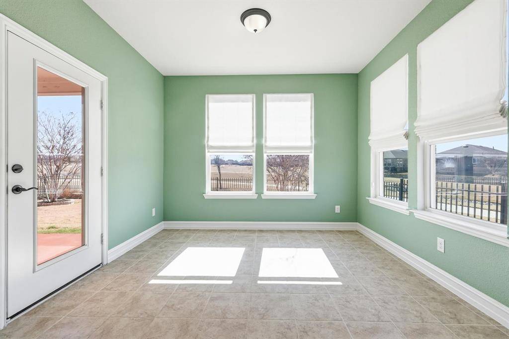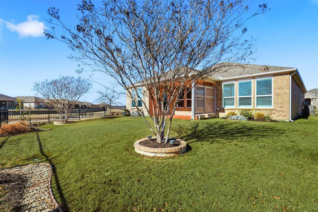 Welcome to 900 Memorial Drive in Del Webb at Union Park, a premier 55+ active adult lifestyle community in Aubrey & Little Elm. Positioned on a desirable corner lot with no neighbors behind only pure green-space, this beautifully maintained home offers comfort, privacy, and a layout designed for easy living. Inside, you'll love the bright open-concept design with a spacious living area that flows seamlessly into the kitchen; perfect for entertaining or relaxing at home. The kitchen features a large center island, gas range, generous cabinet storage with upgraded hardware, and ample countertop space, along with a charming breakfast nook for morning coffee, casual dining. A standout feature of this home is the enclosed sunroom, adding flexible living space that can be enjoyed year-round as a sitting room, hobby area, or peaceful retreat & with all the natural light become the best painter you can be. Step outside to the covered patio and unwind while taking in tranquil views of the greenbelt and the community's beautiful fountain, creating a calm outdoor setting that feels like an everyday getaway. Enjoy being just a short walk from the clubhouse and resort-style amenities, including a luxury pool, fitness center, activity center, tennis, bocce ball & pickleball courts! Plus a full calendar of activities designed for connection, wellness, and fun. And as a bonus, all of Union Park Amenities including a 35-acre Wooded Park, Food Truck Park, Catch-and-Release Pond, Dog Park and more. Conveniently located near shopping, dining, and major commuting routes, this home delivers the lifestyle Del Webb is known for right in the heart of Union Park.
