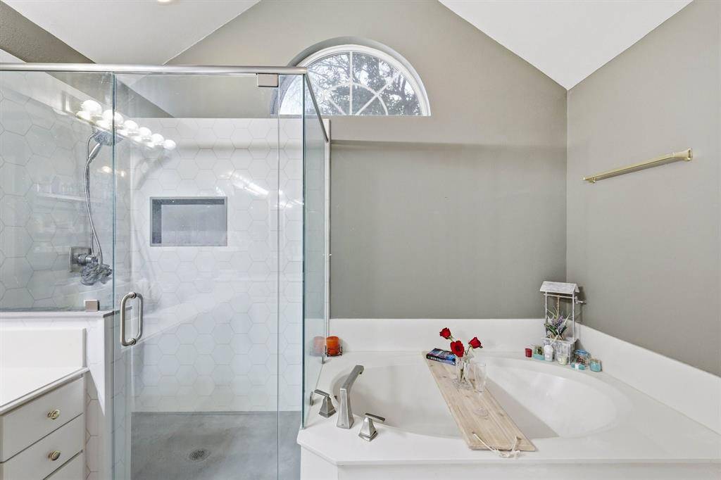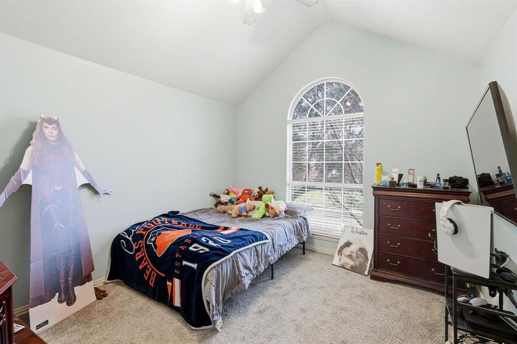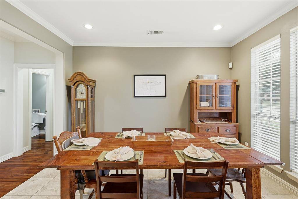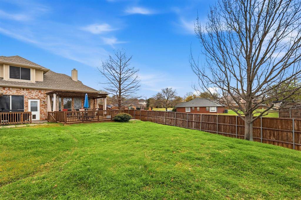 STUNNING 2 STORY 4 bed 2.5 bath ON LARGE CORNER LOT WITH HUGE CEDAR PERGOLA, CUSTOM DECK, PATIO & SIDE ENTRY GARAGE!! Gorgeous Cherry wood Floors, cathedral ceilings & split level waterfall stairs. Elegant front Dining & Study with Built-ins & French door entry. Spacious Living with a back wall of windows & corner wood burning Fireplace with possible transition back to gas. Breakfast Nook & large Chef's Kitchen with granite countertops, wrap around breakfast Bar & walk in pantry. Huge Owner's ensuite downstairs with two level vanity, Garden Tub, oversized shower & big walk in closet with built-ins. All Bedrooms are oversized upstairs with WI Closets. Within walking distance of the 87,000 sq. ft Thrive Center with Natatorium, gymnasium, playground, DFW Airport, 35E,HWY 121 & more!