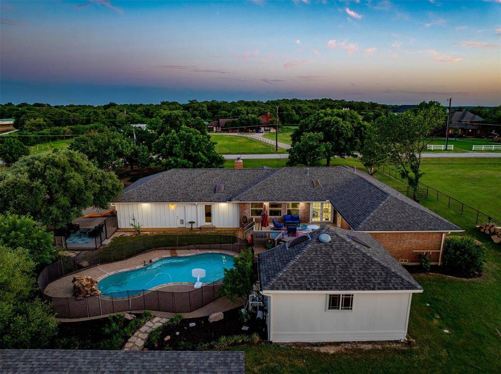 Set on a one-acre, tree-filled lot in Double Oak, this 3-bedroom, 2-bath home with an office has been a place where laughter echoed, projects came to life in the shop, and memories were made around the pool and patio. From the reimagined floorplan — where kids raced through the living areas — to the oversized bedrooms, every inch has been lived in, loved, and cherished.