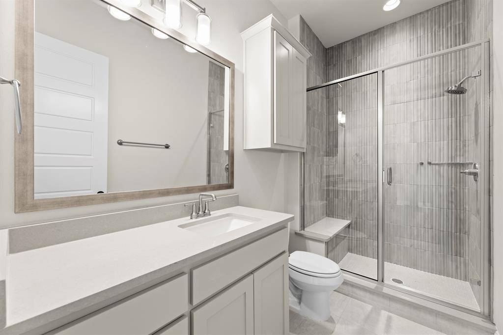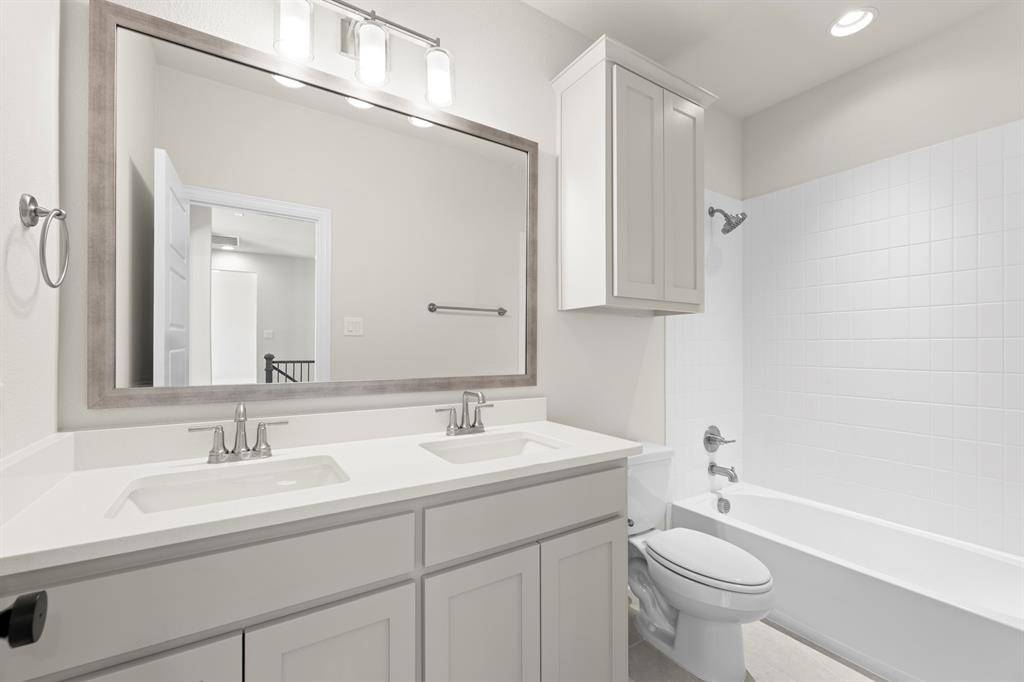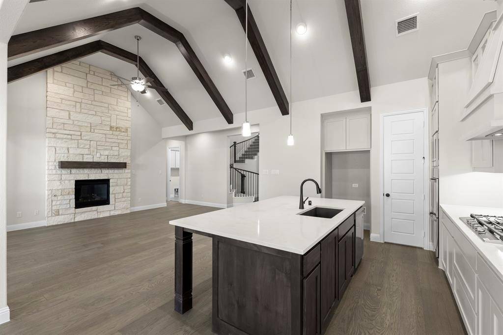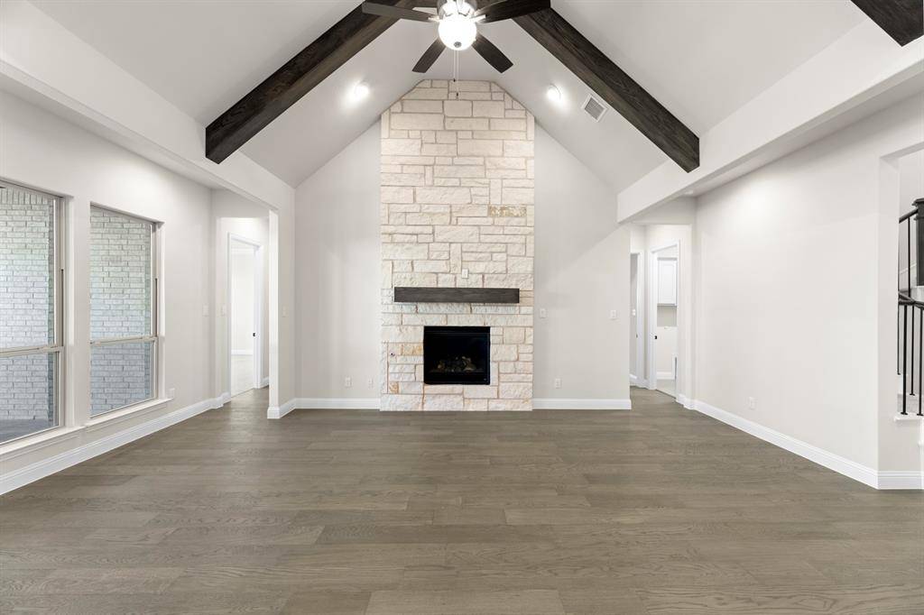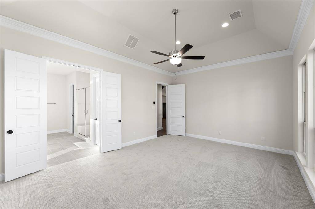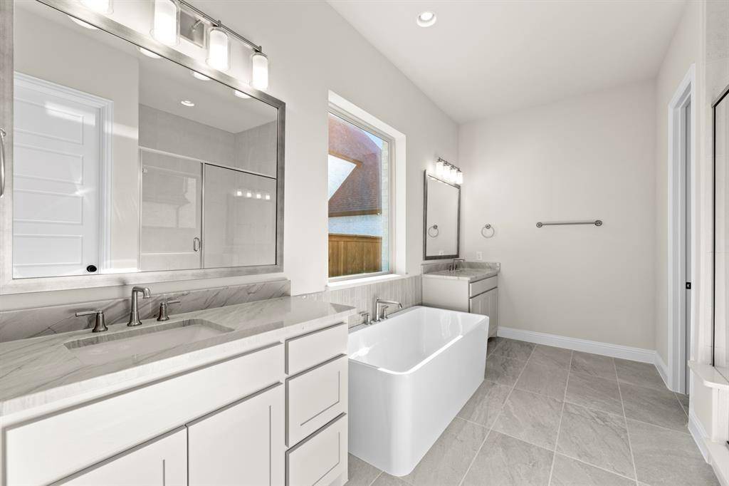 MLS# 21173861 - Built by Windsor Homes - Ready Now! ~ This stunning contemporary single-family residence, set in the desirable Estates at Rockhill, boasts 4,121 square feet of thoughtfully designed living space. With 5 spacious bedrooms and 6 bathrooms (4 full and 2 half), this home is perfect for those seeking extra space. The interior features decorative lighting, a kitchen island, and walk-in closets, enhancing both style and functionality. Enjoy two expansive living areas, a cozy gas fireplace in the family room, and a dedicated breakfast nook area. The home is equipped with central heating and cooling, ceiling fans, and a convenient pantry. Outside, the landscaped yard features a sprinkler system and rain gutters. With a 2-car garage, this property is completed, and is located within the renowned Frisco ISD, offering access to Miller Elementary, Wilkinson Middle, and Panther Creek High School. Don't miss the chance to make this modern masterpiece your own!