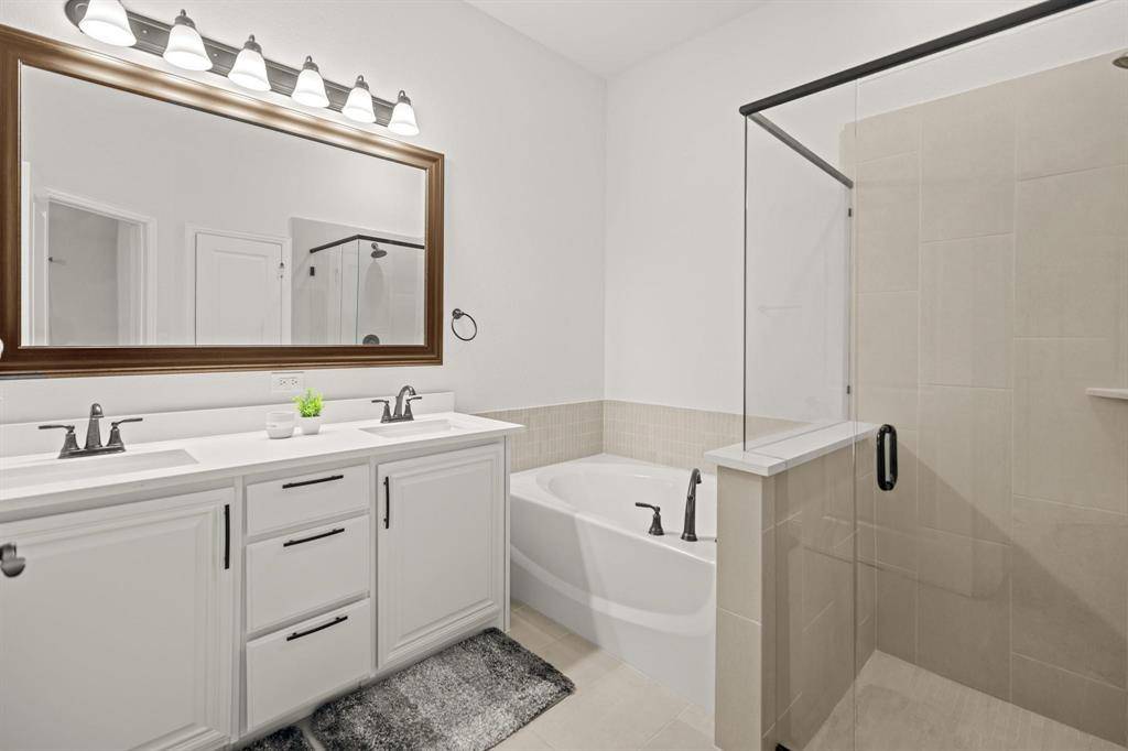 The primary suite serves as a private retreat with dual sinks, a garden tub, separate shower, and a walk-in closet.