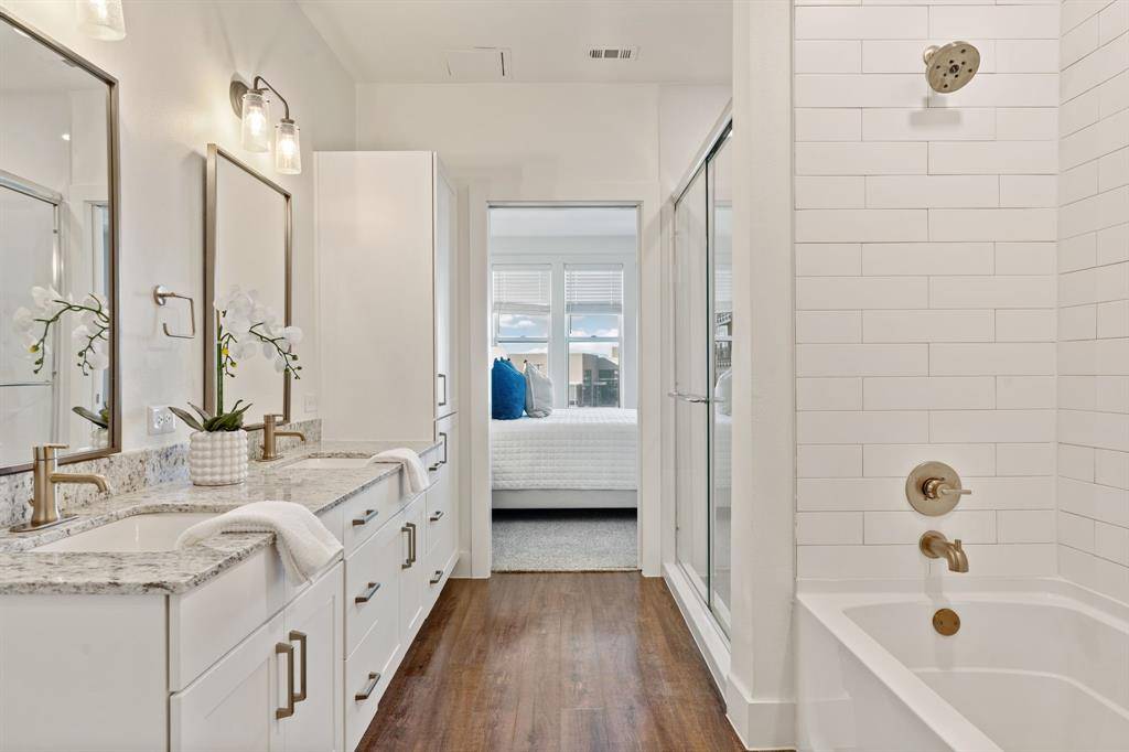 Ideally positioned in Lewisville just minutes from Grandscape, this upgraded corner-unit condo offers a refined blend of modern style, comfort, and convenience. Thoughtfully enhanced with multiple upgrades, the home features an open-concept layout filled with natural light, creating a bright and inviting atmosphere throughout. The kitchen is both functional and stylish, showcasing a spacious island, contemporary finishes, and modern appliances—perfect for entertaining or casual everyday living. The living area flows effortlessly to a private balcony, providing a relaxing outdoor space to enjoy morning coffee or evening downtime. The primary suite serves as a comfortable retreat with ample space for a king-size bed, a sleek en-suite bathroom, and a generous walk-in closet. Two additional bedrooms offer flexibility for guests, a home office, or fitness space, with convenient access to a well-appointed secondary bathroom.