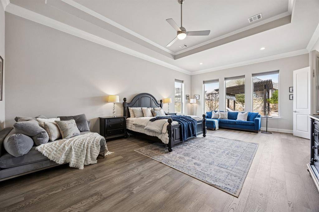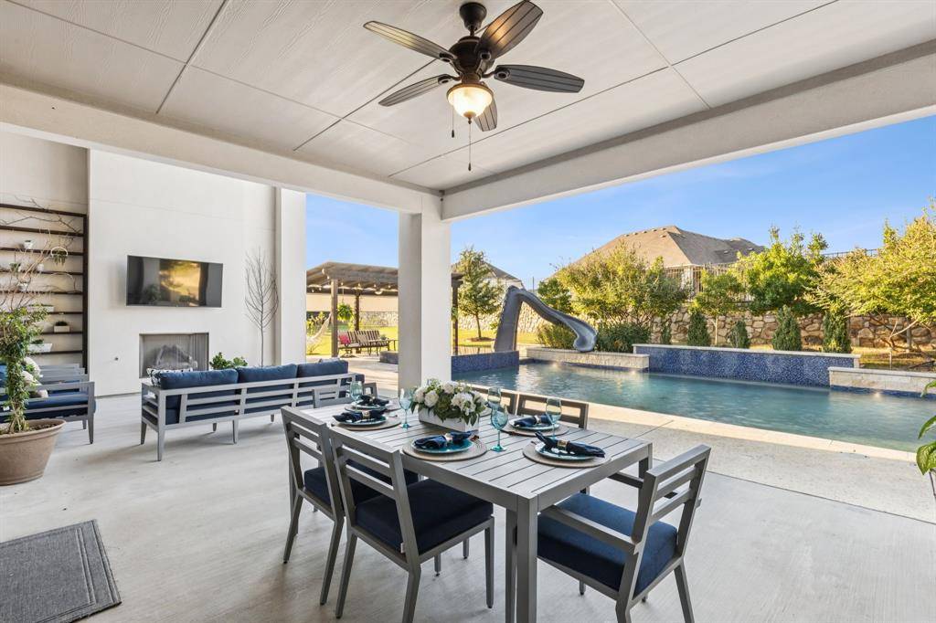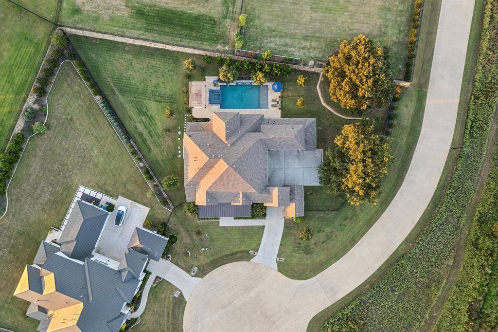 Welcome to a true destination multigenerational home in the desirable Townlake community in Flower Mound, situated on a premium lake-facing lot at a quiet cul-de-sac. Set on 0.8 acres, this property offers generous outdoor space for activities, pets, and entertaining. An inviting front porch leads to a grand foyer with dual staircases and a private office with french doors. The open floor plan blends traditional and contemporary elements, offering abundant natural light, clean lines, and sliding glass door for seamless indoor-outdoor living. The kitchen features an oversized island, premium built-in appliances, and a butler's pantry. The spacious primary suite is a private retreat with spa-inspired bath, stand-alone soaking tub, walk-in shower, and his-and-hers closets.The private first-floor apartment features its own entrance, living area, and kitchenette—creating an ideal retreat for extended family, long-term guests, or live-in support while maintaining complete privacy from the main home. Upstairs offers three ensuite bedrooms with walk-in closets, a game room, stadium sitting media room, conditioned storage room, and a covered balcony overlooking the lake. The backyard is a resort-style escape with a custom Robertson's salt water pool, infinity edge spa, water features, slide, covered patio with fireplace, pergola, and centennial native oaks. A porte-cochère leads to a private motor court and four-car garage. New roof. Conveniently located near award-winning schools and DFW Airport.