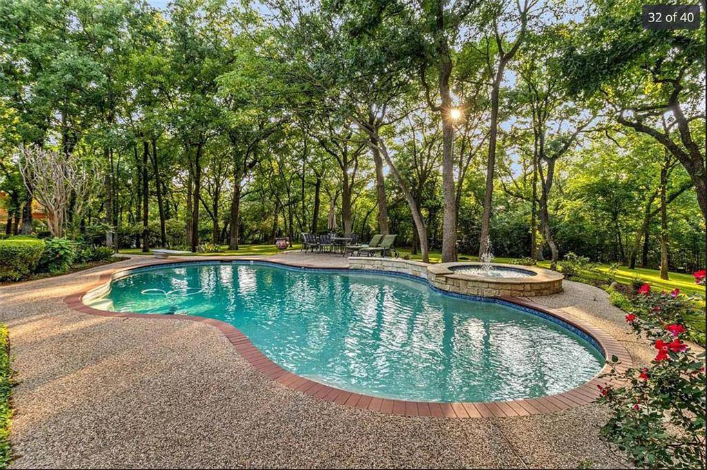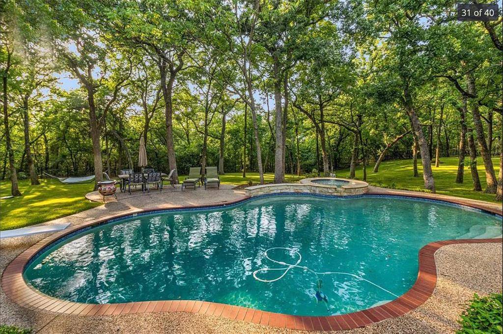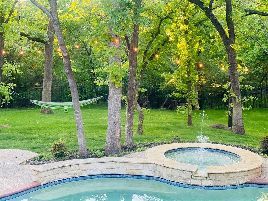 Outside, the lush green backyard, beautiful pool, and mature trees create exceptional privacy. With direct access to hiking and biking trails leading toward Grapevine Lake and Twin Coves Park, this home offers a rare combination of luxury, nature, and lifestyle. Schedule your private showing today!