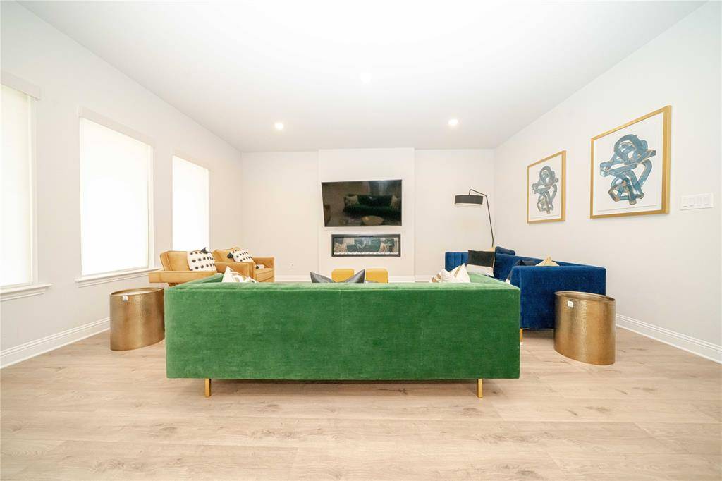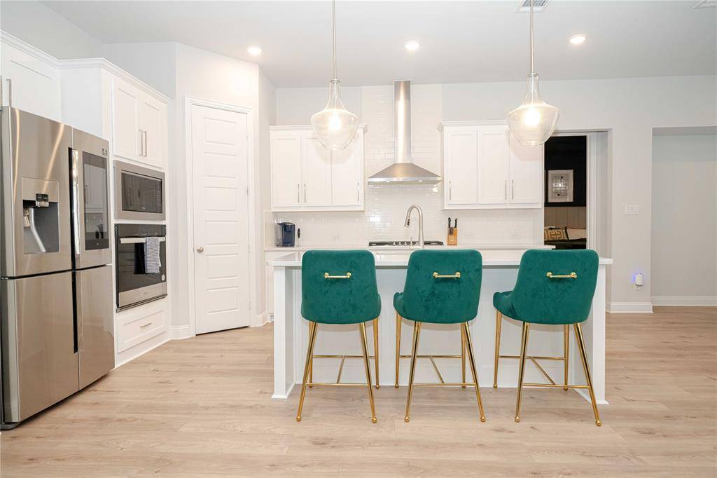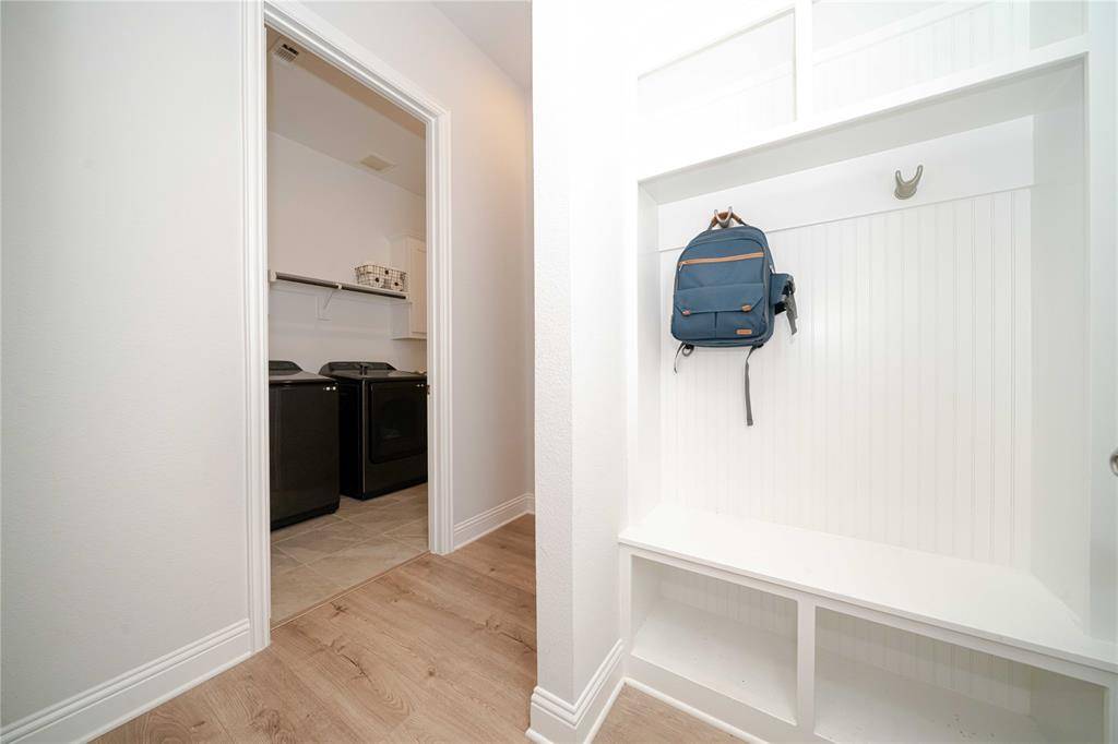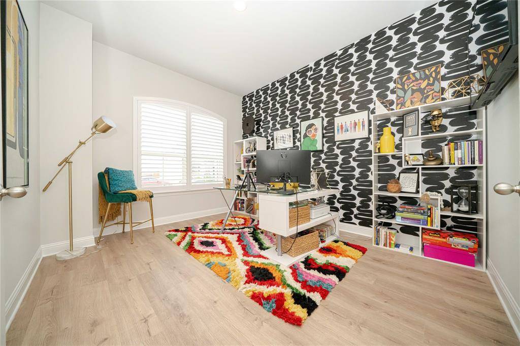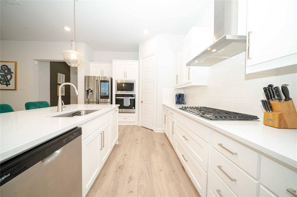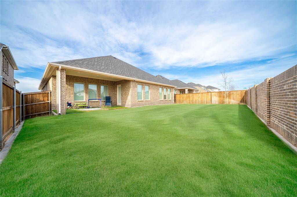 Discover a lifestyle of elegance in the vibrant Valencia on the Lake. North-facing for soft, consistent natural light, this home is tucked in a quiet cul-de-sac with no through traffic. This stunning Barrett floor plan by Mattamy Homes offers a two-year-old build that still radiates the pristine energy of a brand-new residence. Inside, you are greeted by a large foyer with gorgeous flooring and a grand hallway that draws you into the heart of the home. This leads into an expansive open-concept design anchored by a gourmet kitchen featuring a gas cooktop, a massive central island, and abundant storage for the home chef. The space flows seamlessly into a bright dining area and a spacious family room warmed by a fireplace, creating the perfect backdrop for both quiet evenings and lively gatherings. Designed with modern versatility in mind, the floor plan balances privacy with connection. The primary retreat serves as a secluded sanctuary, while a second private ensuite bedroom offers the ideal setup for guests or multi-generational living. Two additional bedrooms share a full bath, and a dedicated home office is positioned at the front of the house to ensure a quiet environment for remote work. Outside, the transition to leisure is effortless, providing a private escape perfect for relaxation. Life in this community extends far beyond your front door, offering a resort-inspired lifestyle within Little Elm ISD. Residents enjoy exclusive access to a clubhouse, fitness center, a sparkling pool, and active amenities including basketball and sand volleyball courts. With 80 acres of verdant open space with scenic trails, adventure is always within reach. You are also perfectly positioned to enjoy the best of Little Elm Park and Hydrous Wake Park to local dining and entertainment hotspots. This move-in-ready gem offers the sophisticated, low-maintenance lifestyle you have been searching for.