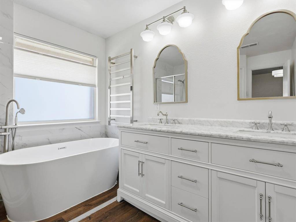 Your dream home is waiting! Step into a bright, open interior filled with natural light and a modern neutral palette, beautifully accented by a cozy fireplace. Recently refreshed with fresh paint throughout and stylish new light fixtures, this home feels clean, updated, and move-in ready. The kitchen offers generous counter space and abundant cabinetry, making meal prep and storage effortless. The serene primary suite provides the perfect retreat at the end of the day, featuring a beautifully remodeled primary bathroom with a separate soaking tub and shower, dual sinks, and ample under-sink storage. Additional bedrooms offer flexible space for guests, a home office, or hobbies. Enjoy outdoor living in the fenced backyard with a covered sitting area — ideal for relaxing evenings or weekend BBQs. Close to all the things Frisco has to offer plus easy access to the Tollway. Excellent Frisco schools as well! Don't miss your opportunity — this one won't last long!