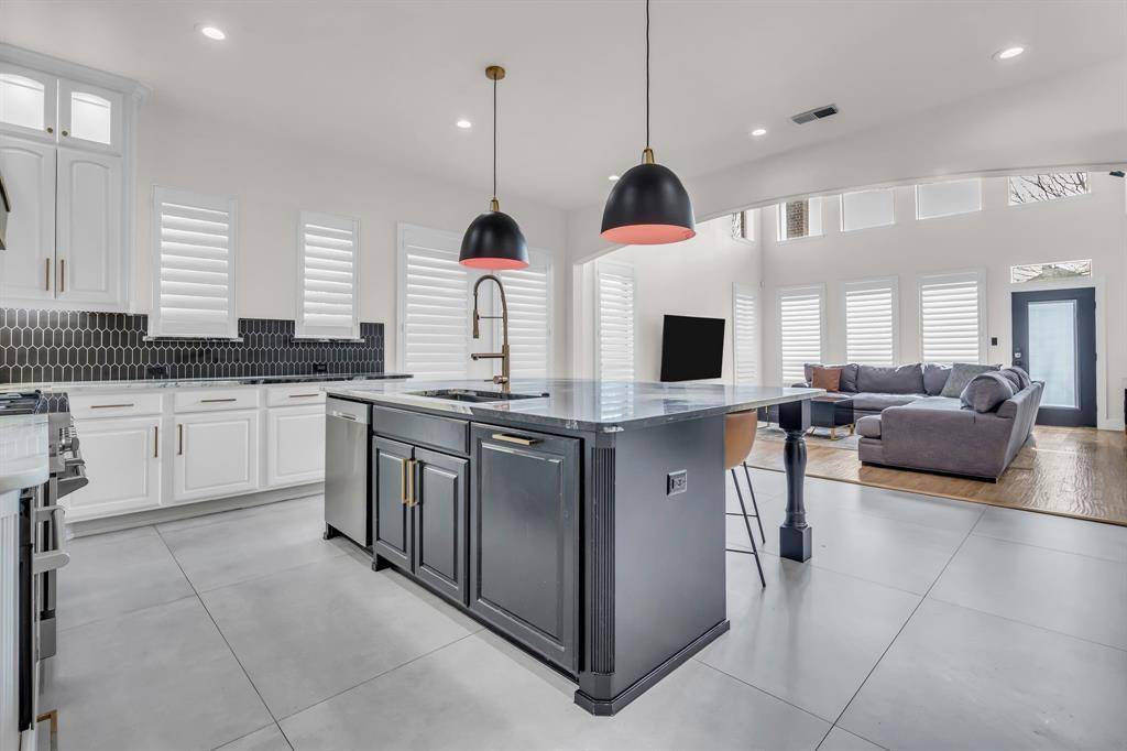 Welcome to refined living in the Isabel Addition of Lantana, where upscale design meets an active, amenity rich lifestyle. This impressive two level home blends modern luxury with functionality, offering a spacious and beautifully curated interior. The kitchen makes a bold statement with top-of-the-line appliances, center island, granite countertops, breakfast bar. Custom built-in dog water and feeding station seamlessly integrated into the cabinetry, featuring a dedicated alcove with designer tile backsplash, wall-mounted pot filler for easy water access, and dual stainless-steel bowls set into a stone base. Thoughtfully designed to keep pet essentials organized and contained while elevating everyday functionality with a clean, high-end finish that complements the kitchen aesthetics.