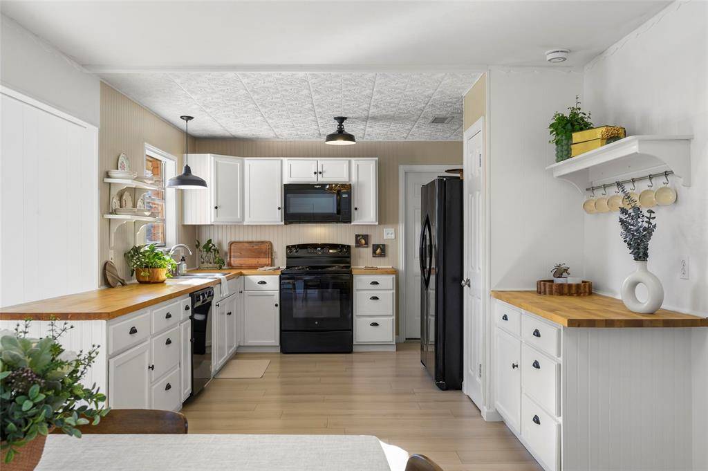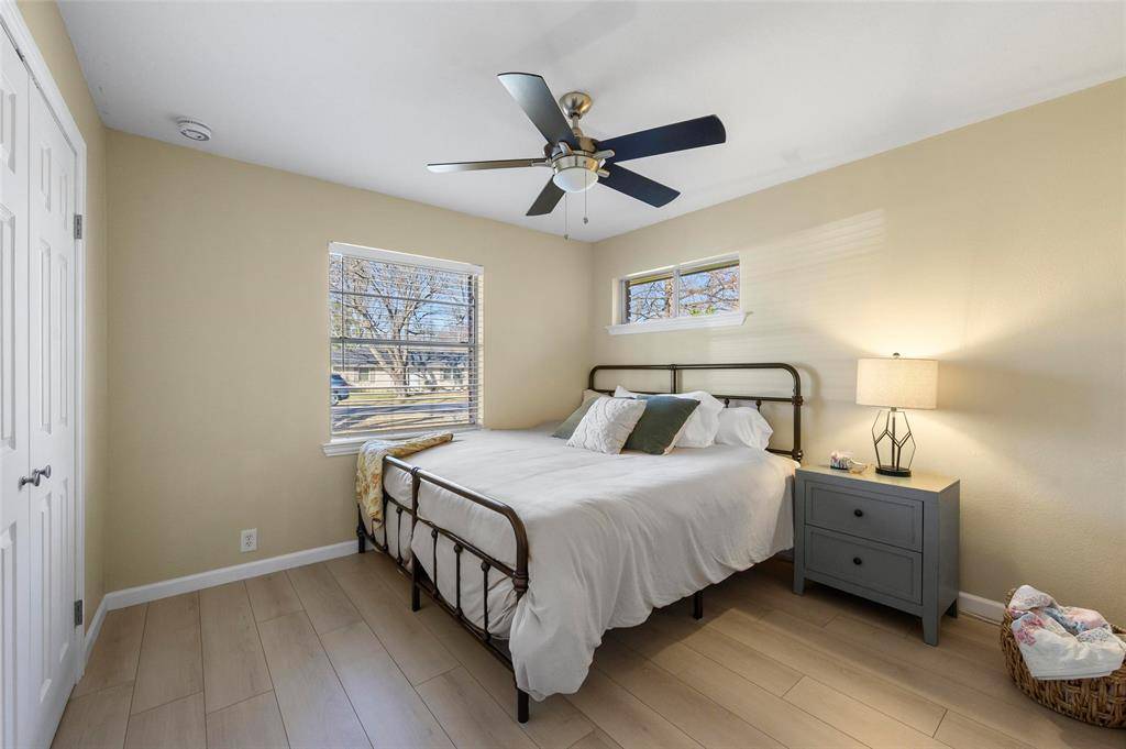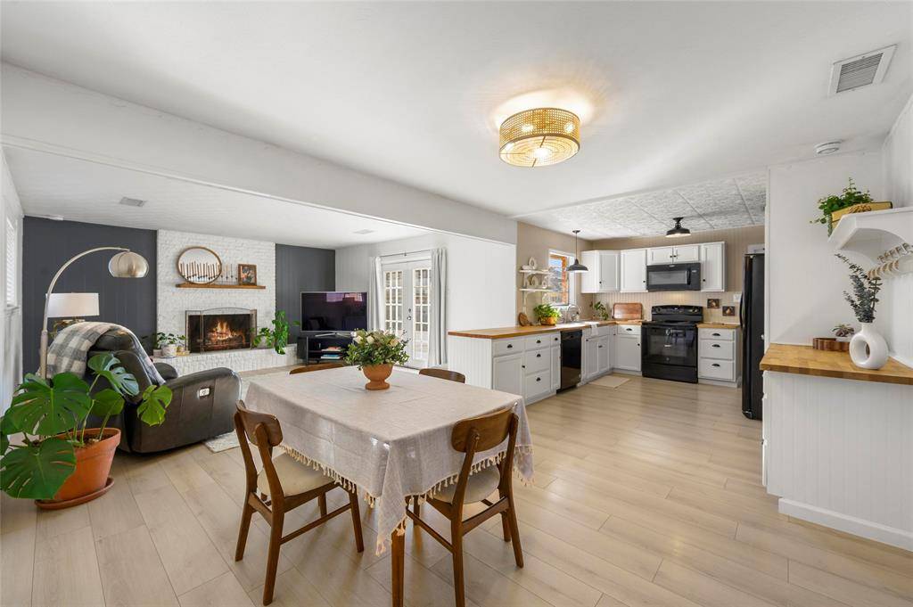Just wait until you see this! Classy, crisp and fresh! Solid ranch style home with designer elements that beckon —- HOME is where the heart is….Open floorplan, 2 living areas, fireplace and large yard. Superb drive up appeal. Atlas Pinnacle class 3 impact resistant Roof replaced in February 2026– cricket added around chimney. Seller systematically upgraded and improved this property during their ownership. Continuous wide plank wood-look luxury vinyl flooring throughout living areas and bedrooms. Fire pit, landscaping, fence, exterior shutters, paint, light fixtures, bathroom exhaust fanes, electrical upgrades, attic insulation, & plumbing are features and updates that make life easy. Hummingbird branded lighted ceiling fans in dining room and primary bedroom. Renovated laundry area with storage and functionality. Six smoke detectors added too. Convenience to I-35 and all that north Texas has to offer. Heritage trees, expansive yard and that country feel street is hard to find at this price range.