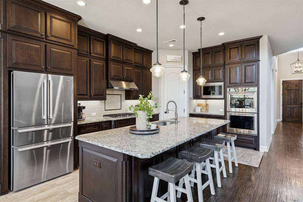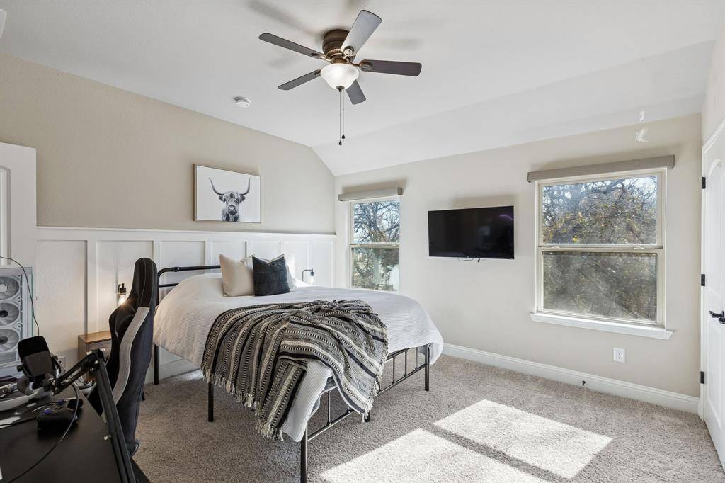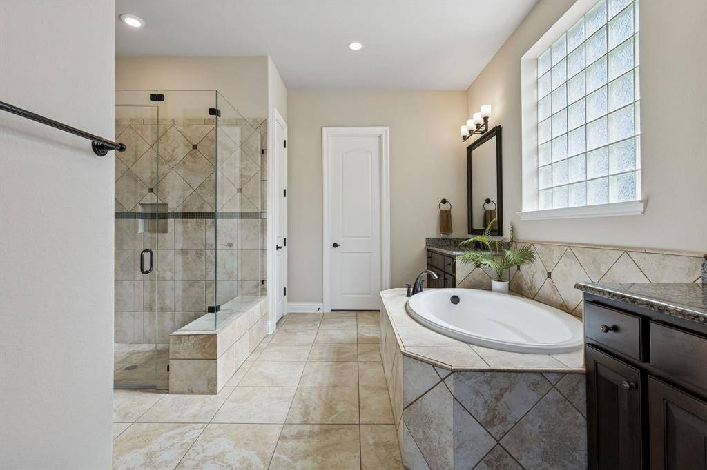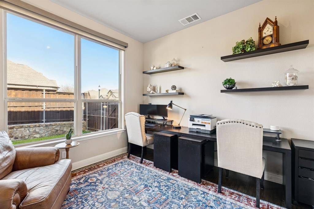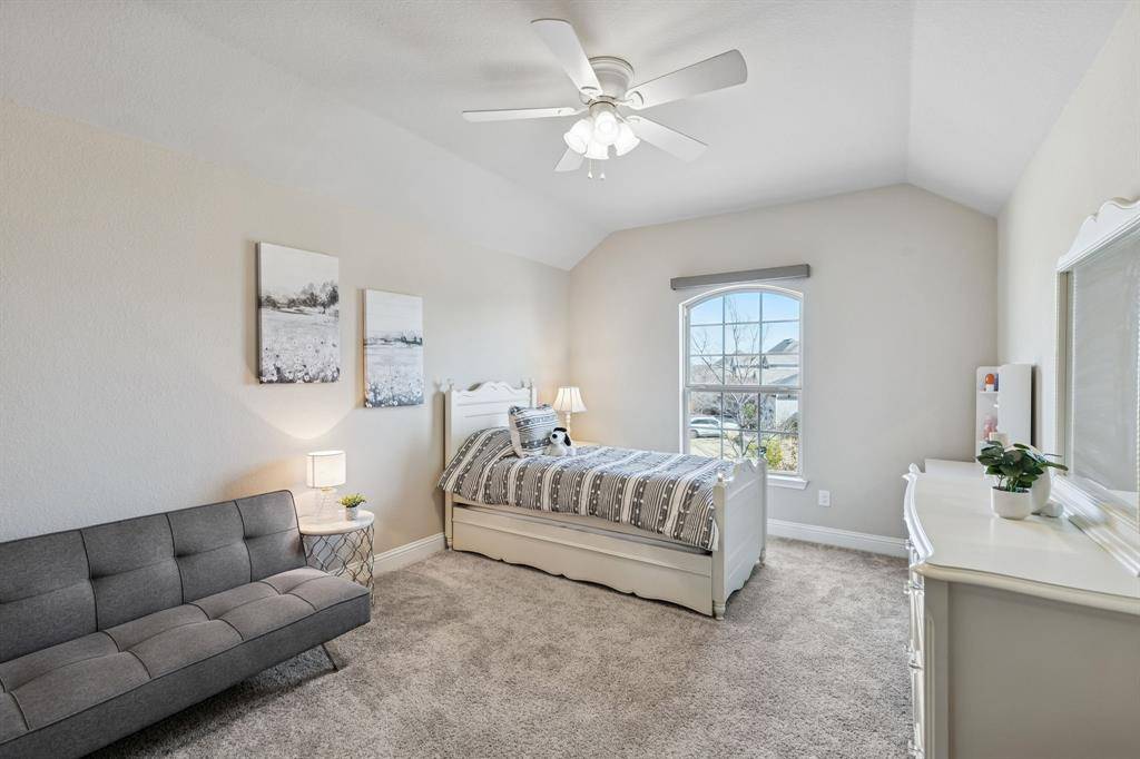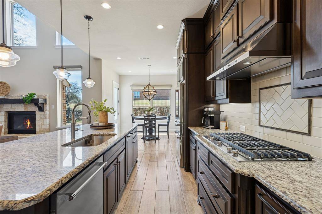Nestled on a picturesque lot in Canyon Falls, this beautifully maintained Toll Brothers-built home offers a lush setting of being surrounded by greenbelts on two sides with direct access to walking trails leading to one of the many Canyon Falls catch & release fishing ponds. Home boasts inviting curb appeal, with custom upgraded stone flowerbeds and front porch with room for seating. Upon entry, soaring ceilings with real hand-scraped hardwoods welcomes you to a floorplan offering flexible living spaces for formal dining, home office, or first-floor media. Kitchen highlights include KitchenAid appliances, gas range, double ovens, expansive granite countertops, subway tile backsplash, abundant shaker cabinetry, and incredible natural light — all overlooking the greenbelt and walking trail views. Primary suite, with lush views, is generously sized and privately positioned, featuring a spa-inspired bath with soaking tub, dual vanities, walk-in shower, and two large walk-in closets. A private first-floor guest suite provides ideal flexibility for visitors or multigenerational living. One of the home's most impressive and unexpected features is the oversized garage (in height and width). Though listed as a 2.5-car garage, the dedicated workshop space with it's bump-outs on all sides and impressive ceiling height, allowing for exceptional upper and side storage. Second story floorplan includes three additional bedrooms and two full baths, complemented by a spacious game room which is tucked away from any open landing. Located within the highly acclaimed Argyle ISD School District and benefiting from a low Flower Mound tax rate of 1.8%, this home also offers easy walking access to both the Elementary and High School. Canyon Falls HOA amenities include: Front Yard Care, Cable, Internet, Fitness Center, Resort Style Pools, Parks, Splash Pads, Dog Park, Basket Ball Court, Clubhouse, Hiking Trails, Cath & Release Ponds, Events & More.