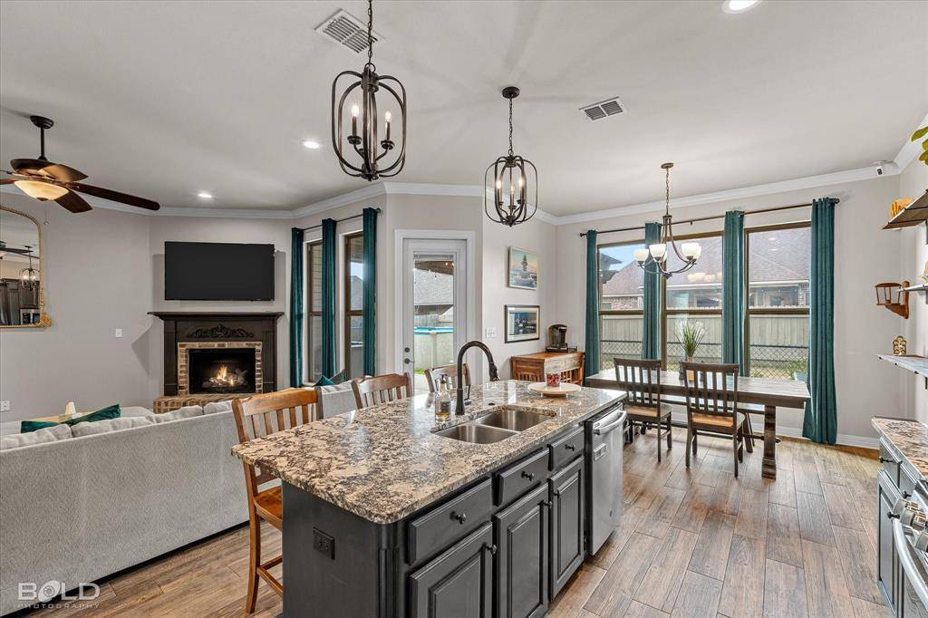 Built in 2018 and meticulously maintained, this exceptional 5-bedroom, 3-bath home offers 2,264 square feet of thoughtfully designed living space in a gated, family-friendly community just minutes from Barksdale AFB, I-20, and I-220. The smart split floor plan provides ideal functionality, with a private primary suite positioned opposite a separate children's wing for added comfort and privacy. The heart of the home is the expansive open-concept kitchen featuring granite countertops, abundant cabinetry, two pantries, and seamless flow into the dining and living areas. Large windows fill the space with natural light, creating a bright and inviting atmosphere perfect for both everyday living and entertaining. A versatile bonus room offers flexibility as a home office, media room, or secondary living area. The primary suite serves as a true retreat, complete with a spacious walk-in closet, double vanities, a jetted soaking tub, glass and tile walk-in shower, and a private water closet. Storage is a standout feature throughout the home, including linen closets, generous bedroom closets, and a massive walk-in attic with built-in shelving. Outdoor living is designed for enjoyment, featuring a covered patio with TV and grill setup, extended entertaining space with a built-in bar, professionally constructed pergola, above-ground pool, backyard dog run, and dedicated pet room. Located in a desirable school district within a connected, welcoming neighborhood, this home offers the perfect blend of space, comfort, and lifestyle convenience.