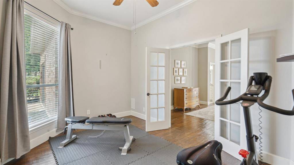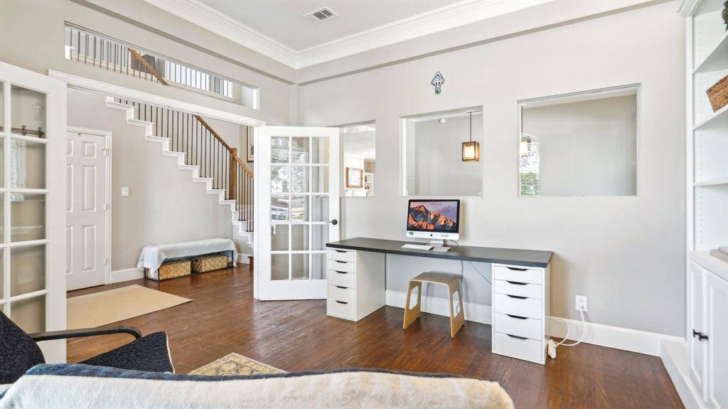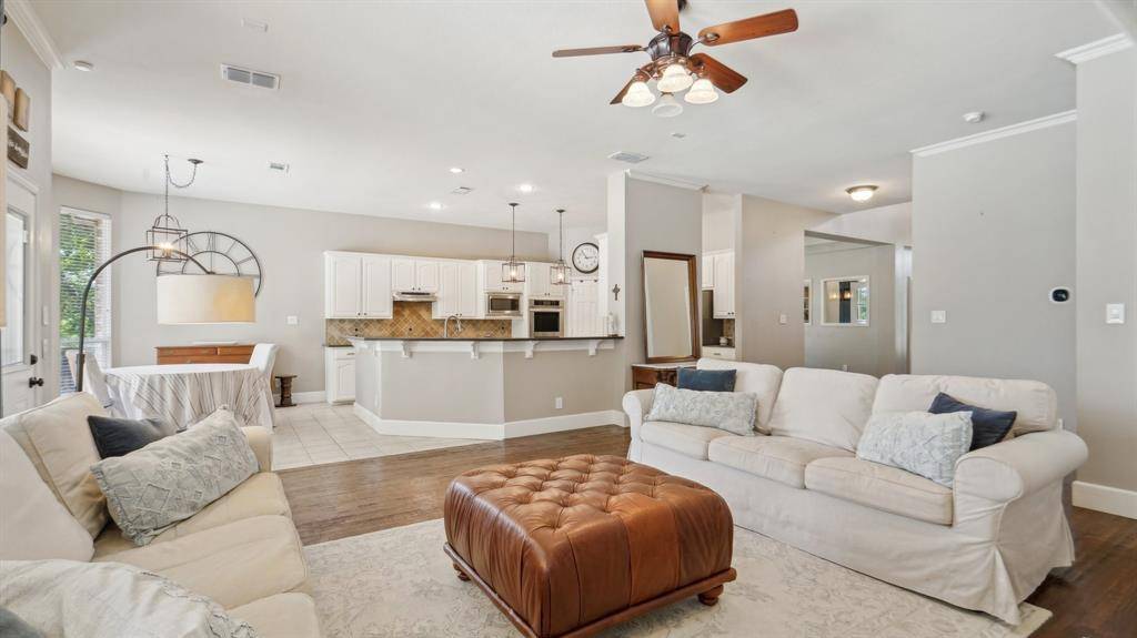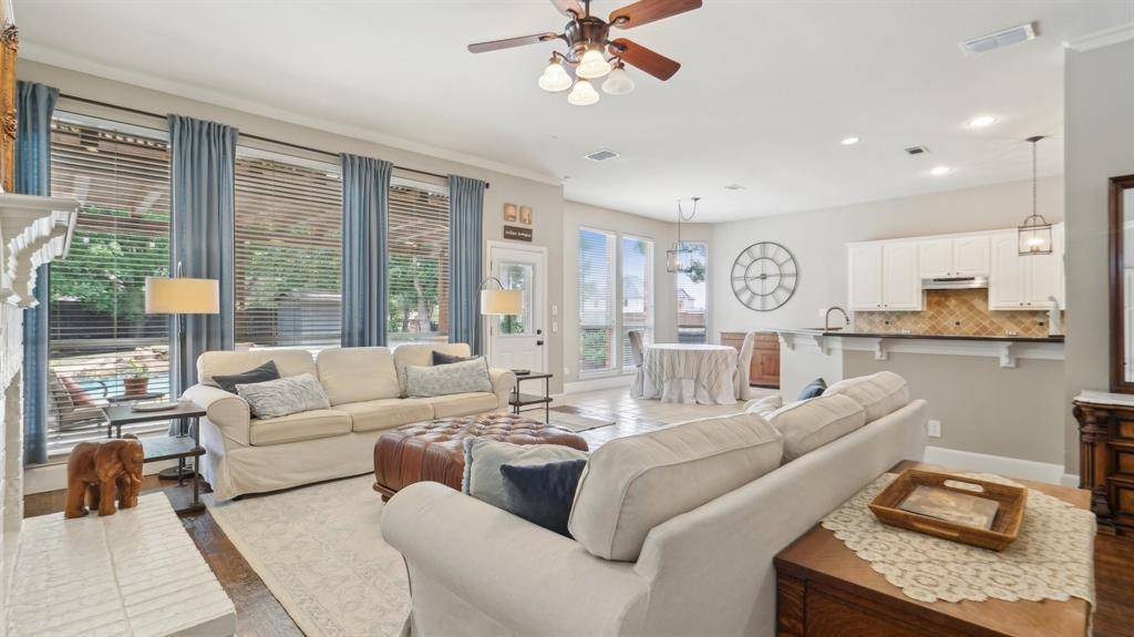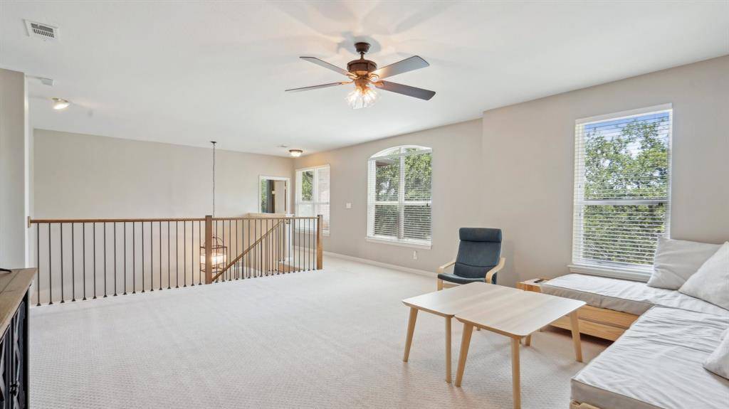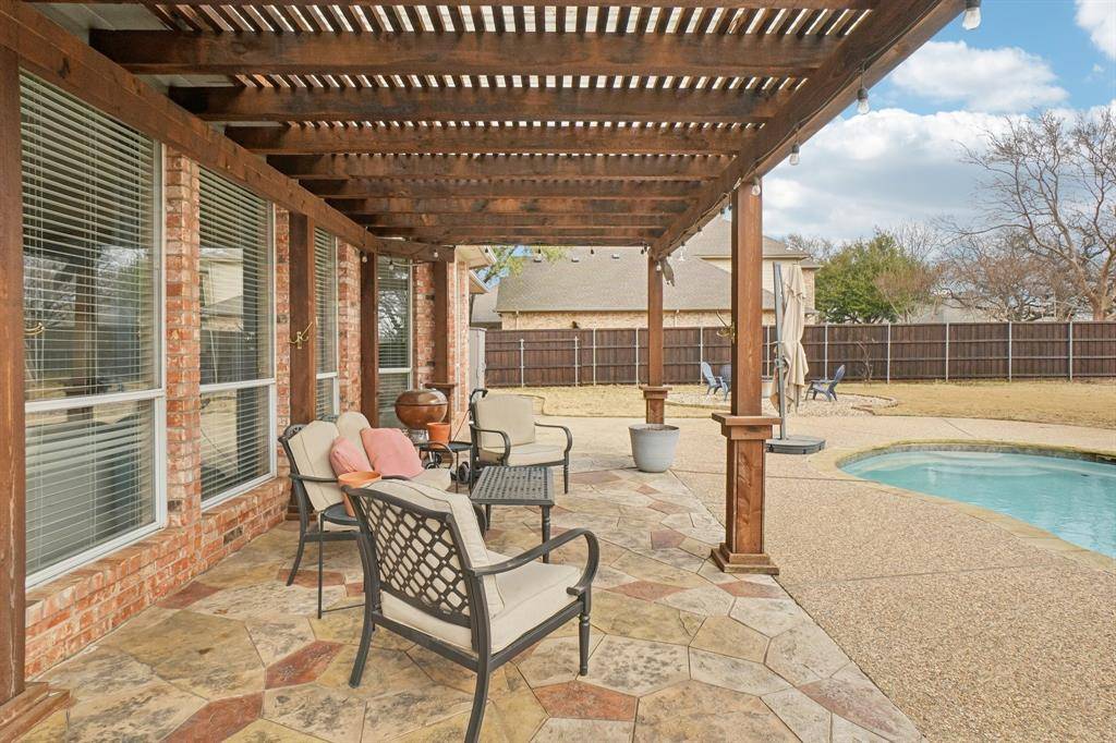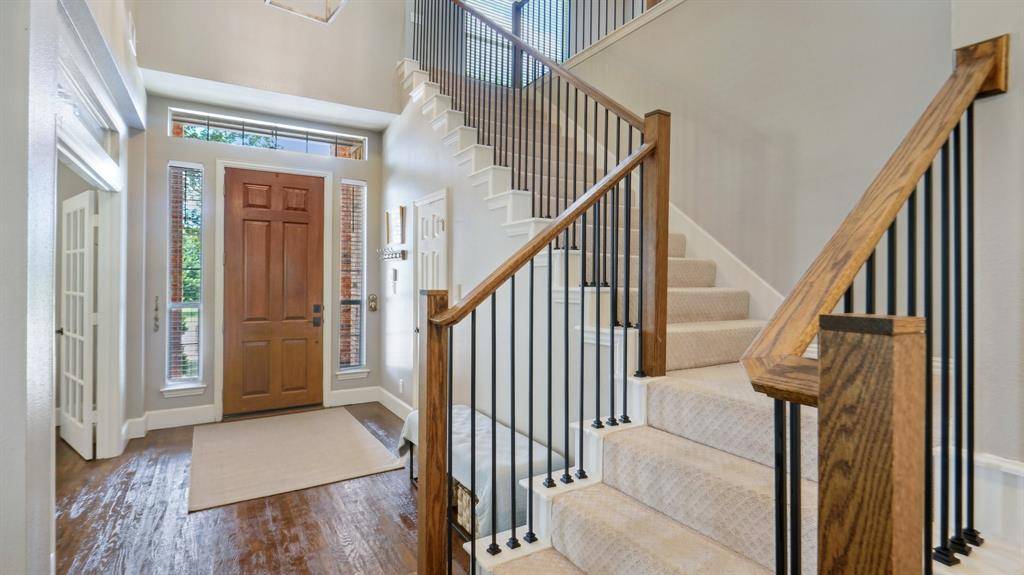 This home has it all! Located in a very desirable neighborhood nestled in the heart of Flower Mound. This gorgeous home boasts updates galore with a beautiful design finish. Spacious downstairs offers an open concept, with high ceilings and beautifully handscraped hardwood floors throughout. Large Master bedroom suite with stunning updated master bathroom & attached space w French Doors perfect for a peaceful sitting area, workout room or a private office. Step outside to the private backyard oasis with refreshing pool, patio, new private fence and plenty of grass for opportunity to play and entertain. Upstairs offers living area, split bedroom layout. 3rd bedroom has private attached bathroom- great for guests! Meticulously maintained. Recently installed FOAM insulation in the attic and a U-V Airscrubber added to the HVAC.