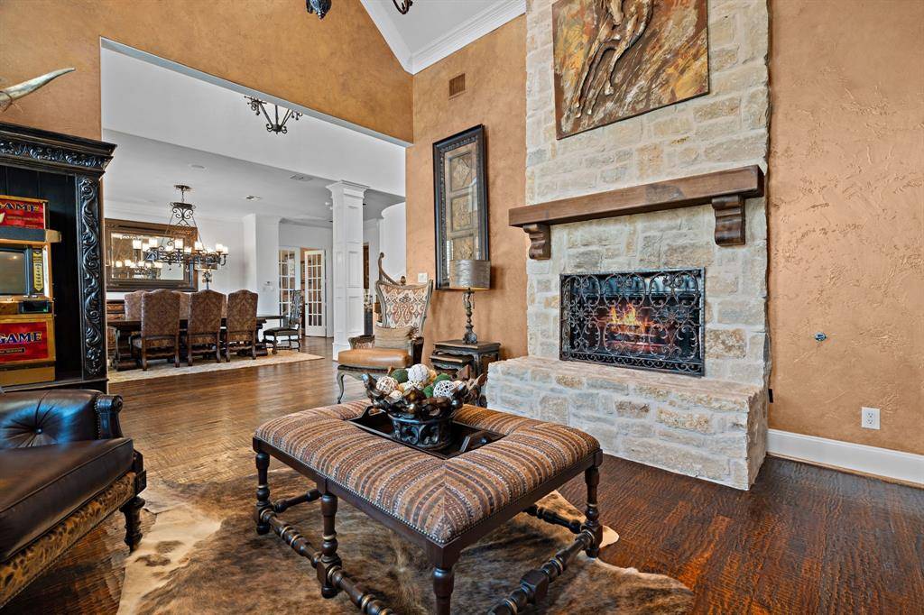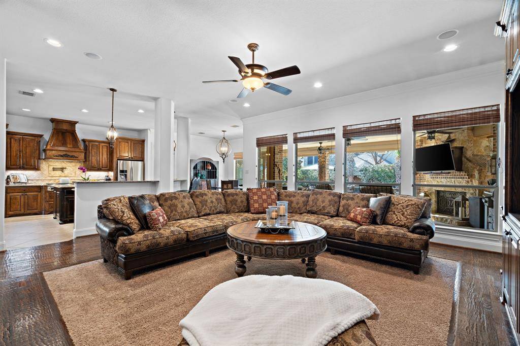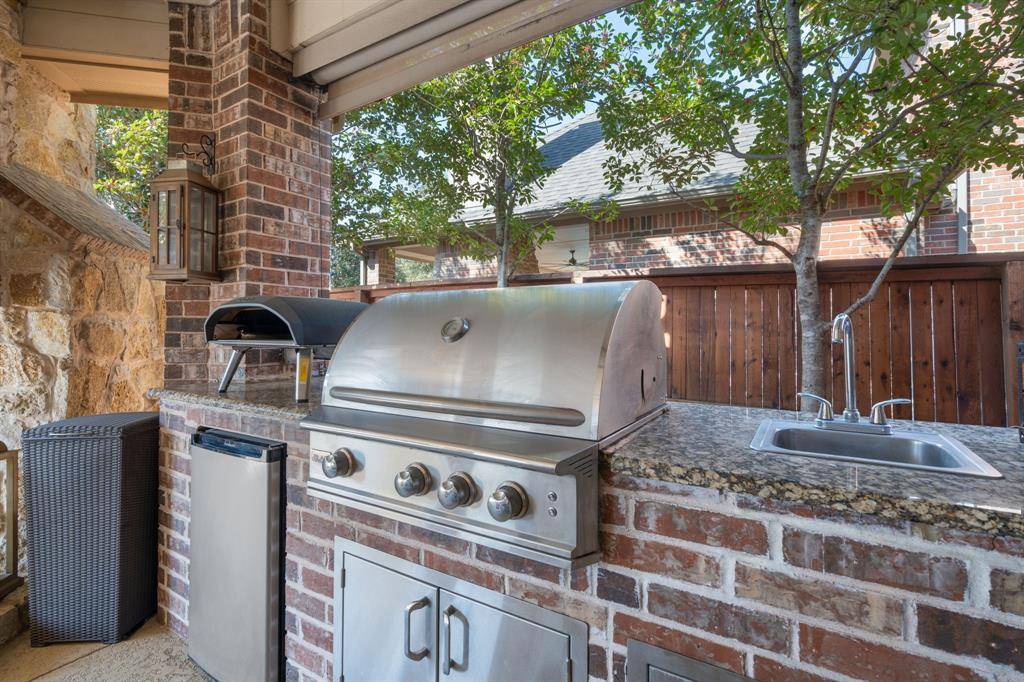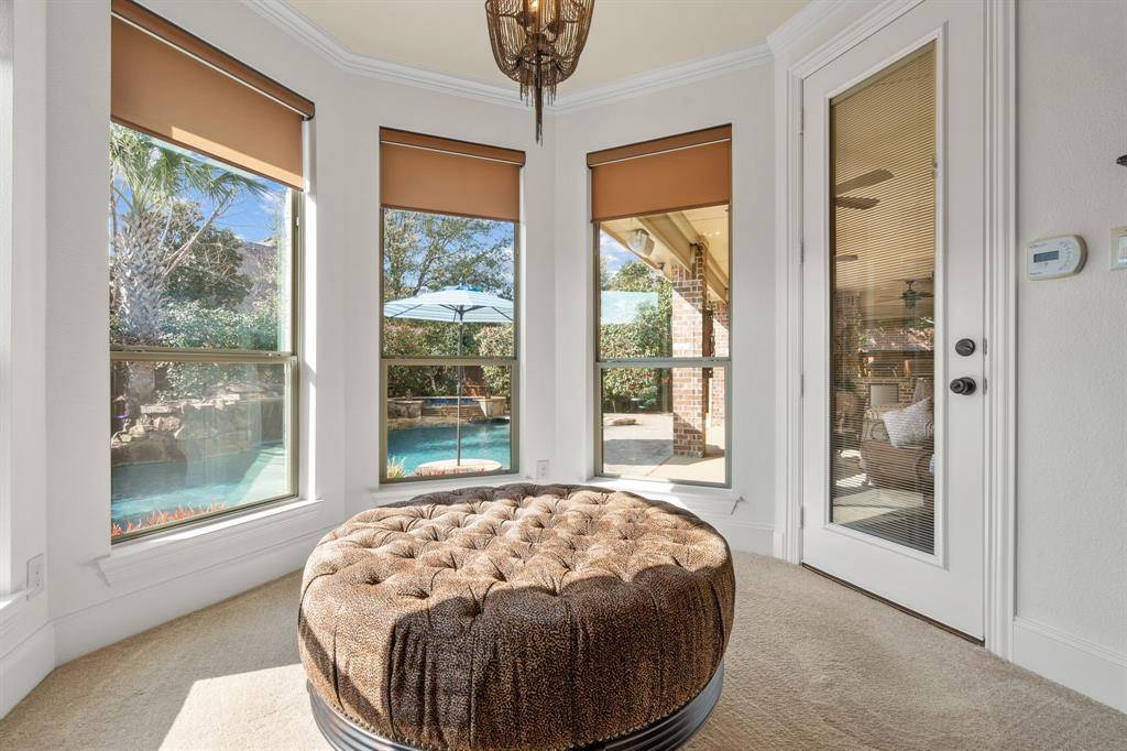 Step outside to your own backyard retreat. The resort-style pool with a grotto and hot tub anchors the outdoor living space, while the covered patio invites year-round entertaining. Whether hosting friends after a round of golf or enjoying quiet evenings under the Texas sky, this home was built for memorable moments.