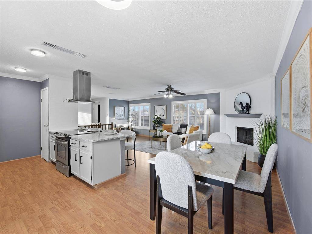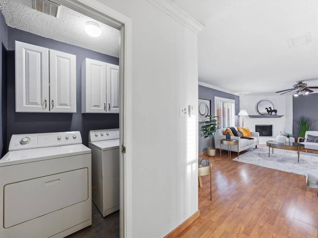 Welcome to this spacious and inviting home tucked away on a quiet cul-de-sac in the heart of Flower Mound offering convenient access to local parks, shopping, dining, and everyday amenities. Step inside to discover a bright and welcoming interior highlighted by an open living area that serves as the central gathering space of the home. Large windows allow natural light to fill the room, while the cozy fireplace creates the perfect atmosphere for relaxing evenings or hosting guests. The beautifully updated kitchen is a true focal point, featuring granite countertops, generous cabinet storage, and a functional layout designed for both daily living and entertaining. A breakfast bar provides additional seating and connects seamlessly with the dining and living areas, making the space ideal for gatherings. The generously sized primary suite is conveniently located on the main level, offering a comfortable retreat complete with a private ensuite bath and walk-in closet. Upstairs, two spacious secondary bedrooms share a full bath, providing flexibility for guests or a home office setup. Outdoor living is equally impressive. The backyard showcases a sparkling in-ground pool surrounded by upgraded landscaping, creating a private oasis perfect for relaxing afternoons or summer entertaining. A covered patio offers a shaded space for outdoor dining or enjoying quiet evenings, while the surrounding yard provides additional room to play or garden. A storage shed adds convenient space for tools and outdoor equipment.