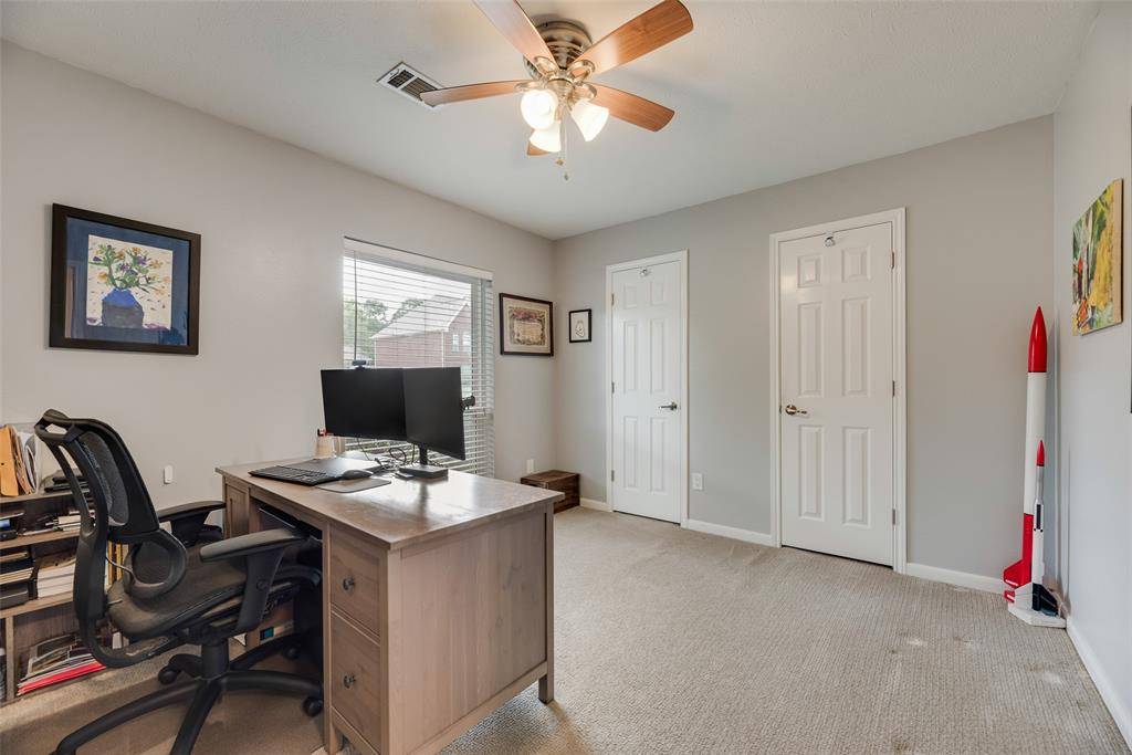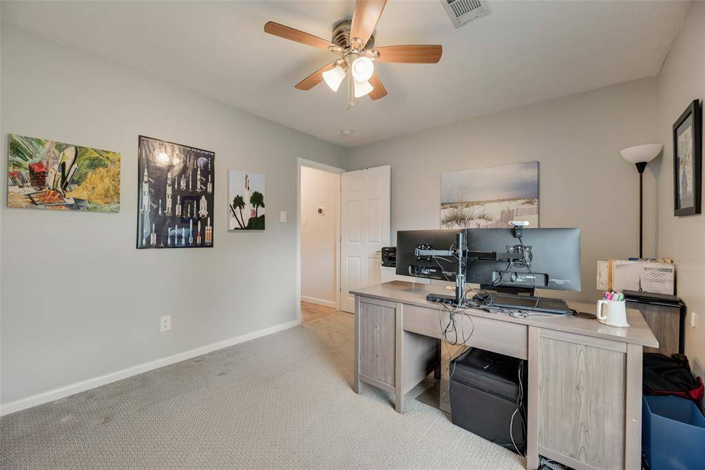 Open House - Saturday March 21 from 12-3, please come by to view this fabulous home. Welcome to this captivating single-story gem in Briarhill Estates, where convenience meets elegance. This meticulously maintained sanctuary features a huge living area bathed in natural light, boasting high ceilings and a cozy gas-starter fireplace. The heart of the home is a beautifully remodeled kitchen, complete with a sprawling quartz island, custom glass-front cabinetry, and ample space for the home chef. The floor plan offers four oversized bedrooms plus a dedicated home office, ensuring space for everyone. The private primary suite provides a spa-like retreat with a jetted garden tub, separate shower, and dual vanities with his-and-hers closets. Significant recent updates provide peace of mind, including brand-new energy-efficient windows, a new roof, and a new board-on-board privacy fence. Car enthusiasts and hobbyists will love the large garage, featuring a dedicated 20-amp shop line, workbench area, and ample storage. Located in a golf-cart-friendly community, the garage is perfectly suited for cart or motorcycle storage. Positioned in a prime location for families, this home is near A-rated schools, with Heritage Elementary and Briarhill Middle School within a 10-minute walk, and Marcus High School just 1.5 miles away. Enjoy proximity to the 38-acre Unity Park, offering Kids Kastle playground, pickleball, baseball, soccer, walking trails, a fishing pond, and a large dog park. This is more than a house; it's a thoughtfully upgraded lifestyle in the heart of Highland Village.