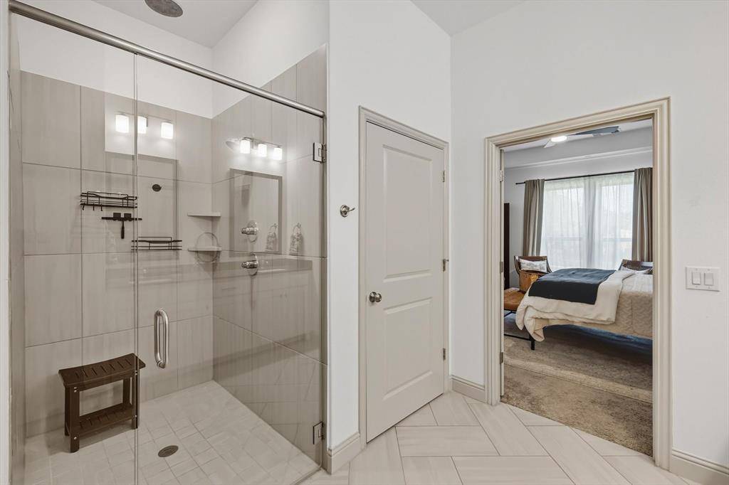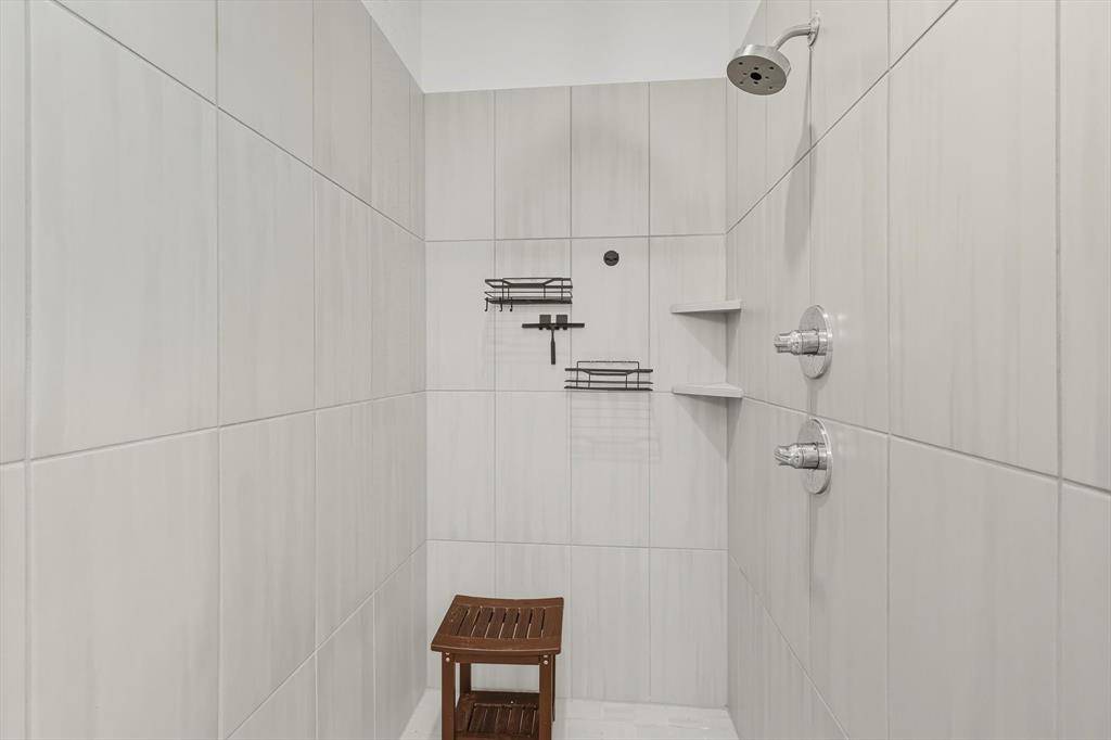 Inside, you will find a light-filled, open-plan space with modern finishes and designer touches. The kitchen is a showstopper, featuring quartz countertops, stainless steel appliances, gas cooking, and a spacious island perfect for entertaining. Furthermore, the home was thoughtfully built with ADA compliant features, including an upgraded walk-in shower with a rain head, wide doorways, and easy accessibility.