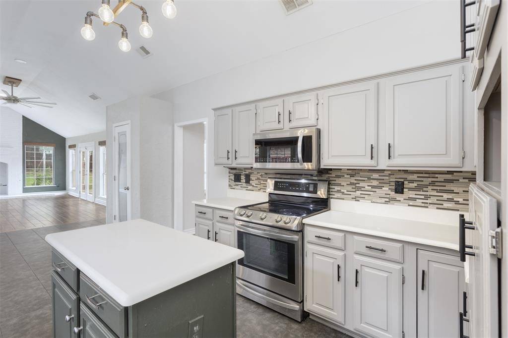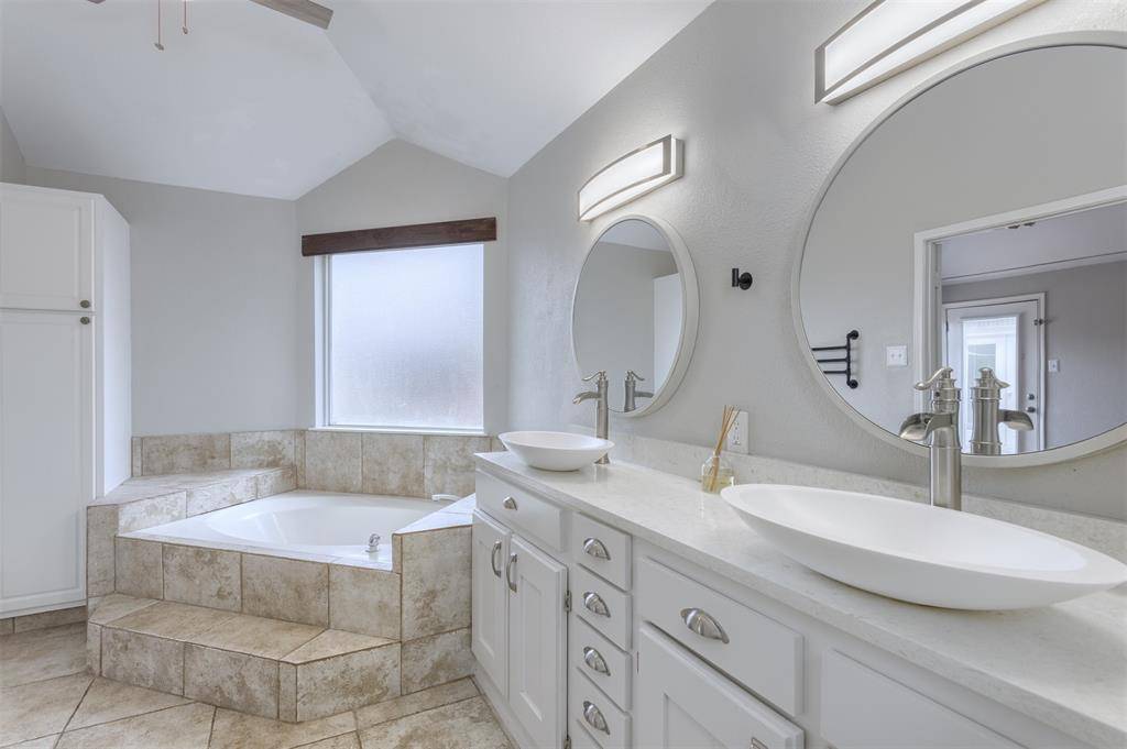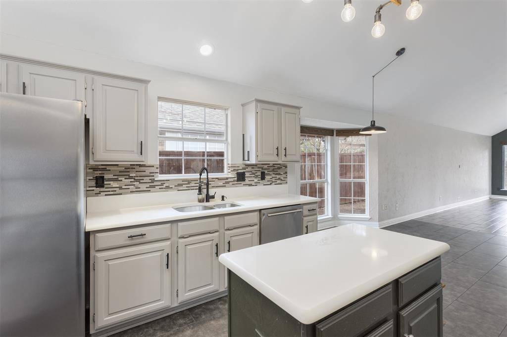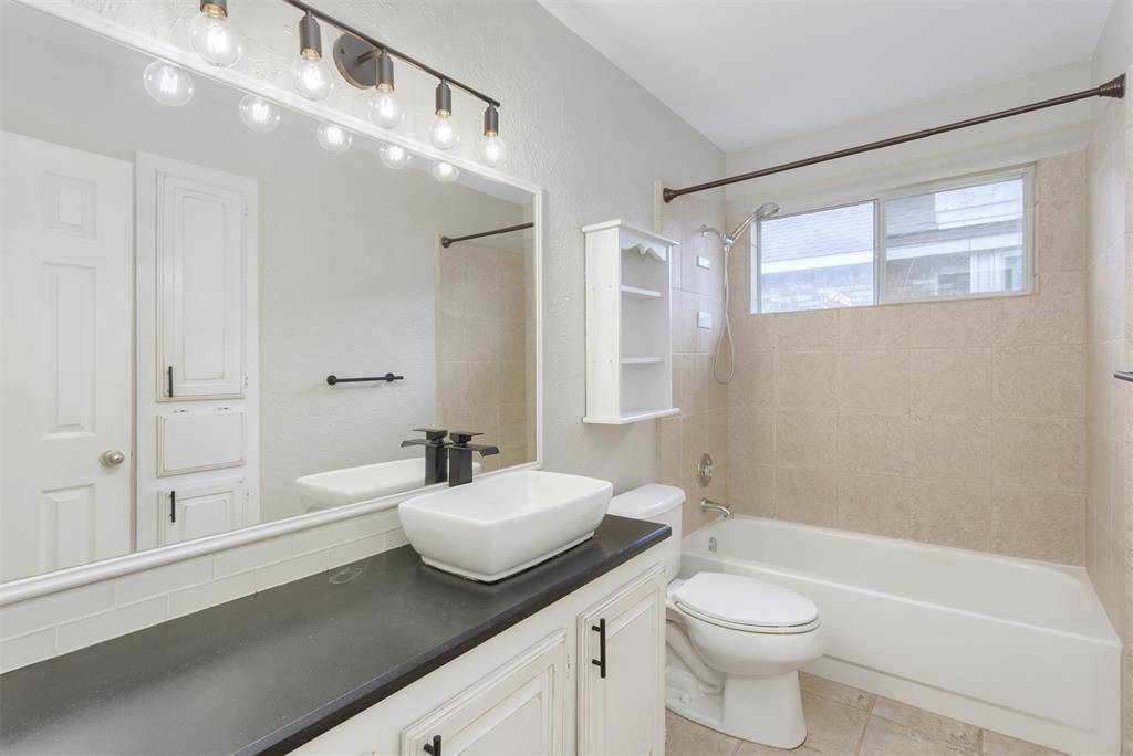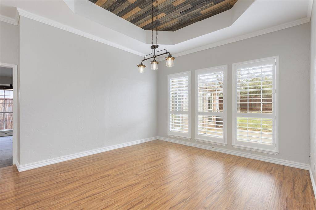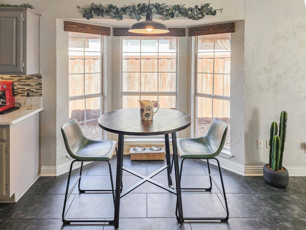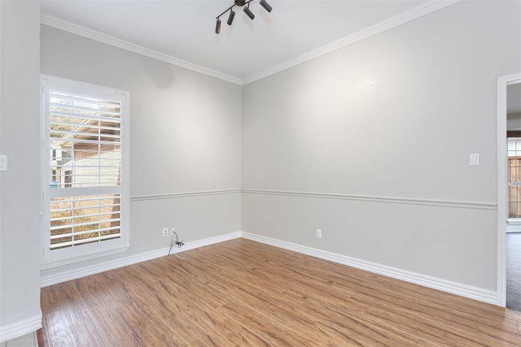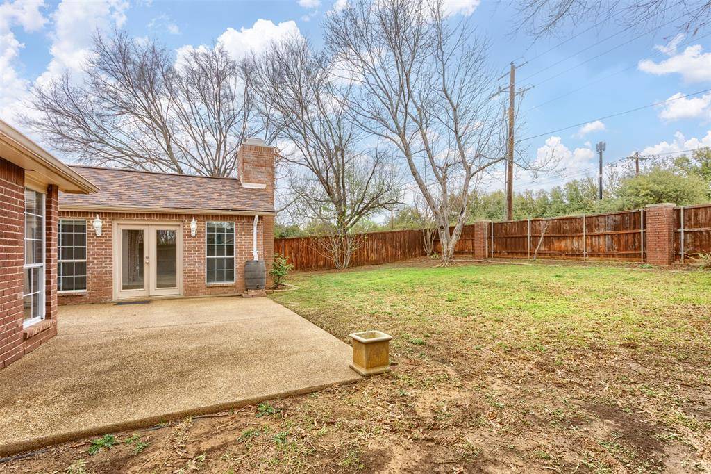 Beautifully updated and move-in ready, this unique-floorplan home offers standout style and comfort in the heart of Flower Mound for $500,000. Mature trees and plantation shutters create timeless curb appeal, while the interior features fresh paint, removed popcorn ceilings, and thoughtful upgrades throughout. The kitchen includes quartz countertops, a pantry, and a bright breakfast area that opens to a spacious family room with cathedral ceilings and an oversized fan. A bonus room showcases a floor-to-ceiling white-brick decorative fireplace with gas hookup and French doors leading to the large patio. The primary suite features a tub, double vanity, seamless glass shower, and linen storage. Two front bedrooms and formal spaces offer flexibility. The fenced backyard is perfect for Texas evenings, with towering trees, a storage shed, and a gardener's planter.