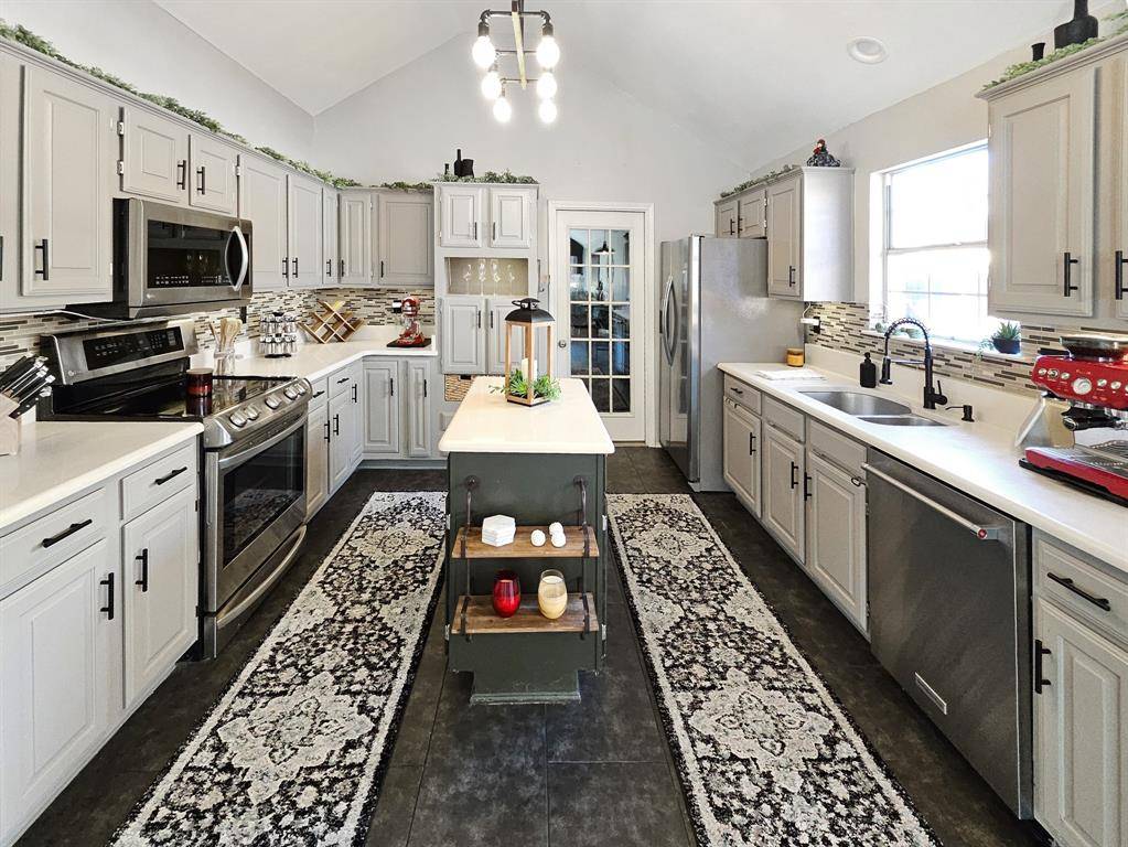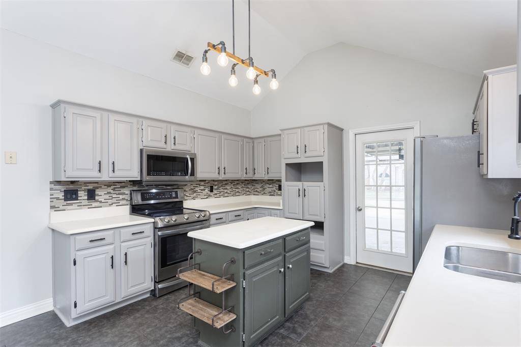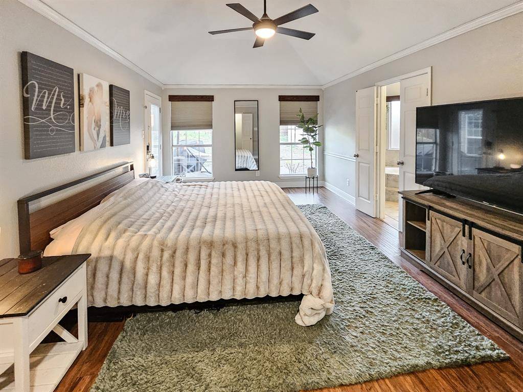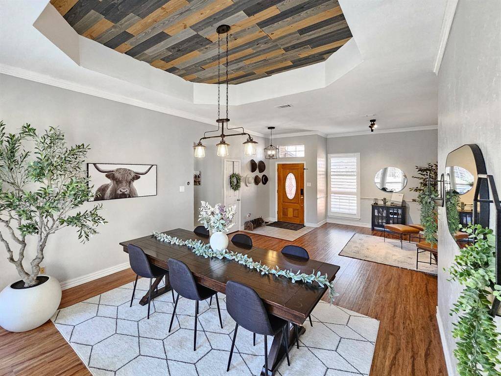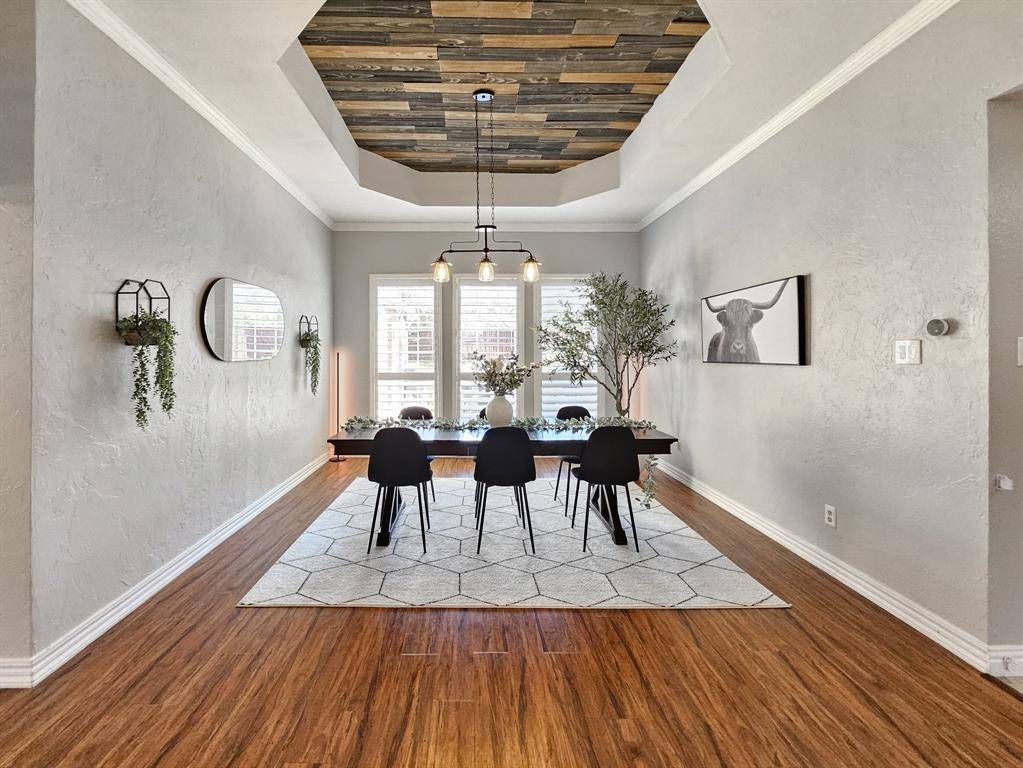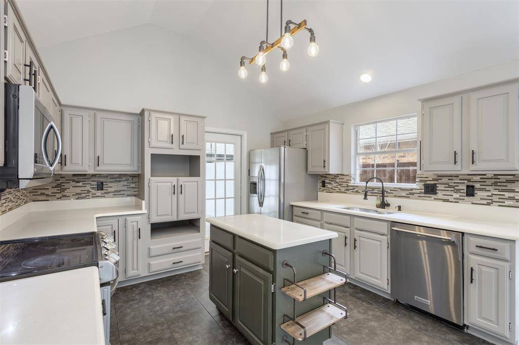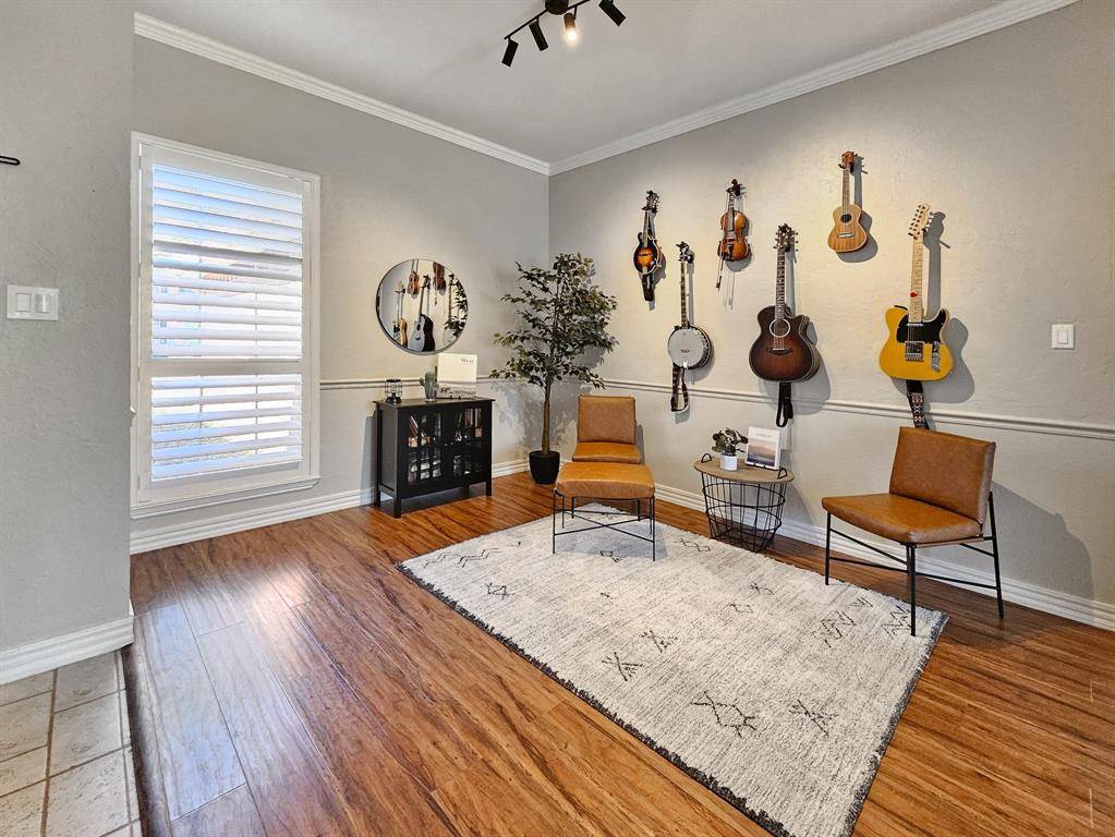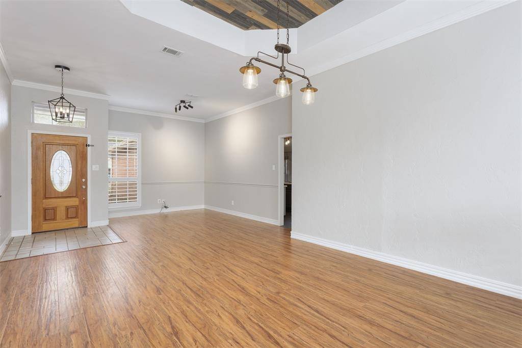 Beautifully updated and move-in ready, this unique-floorplan home offers standout style and comfort in the heart of Flower Mound for $500,000. Mature trees and plantation shutters create timeless curb appeal, while the interior features fresh paint, removed popcorn ceilings, and thoughtful upgrades throughout. The kitchen includes quartz countertops, a pantry, and a bright breakfast area that opens to a spacious family room with cathedral ceilings and an oversized fan. A bonus room showcases a floor-to-ceiling white-brick decorative fireplace with gas hookup and French doors leading to the large patio. The primary suite features a tub, double vanity, seamless glass shower, and linen storage. Two front bedrooms and formal spaces offer flexibility. The fenced backyard is perfect for Texas evenings, with towering trees, a storage shed, and a gardener's planter.