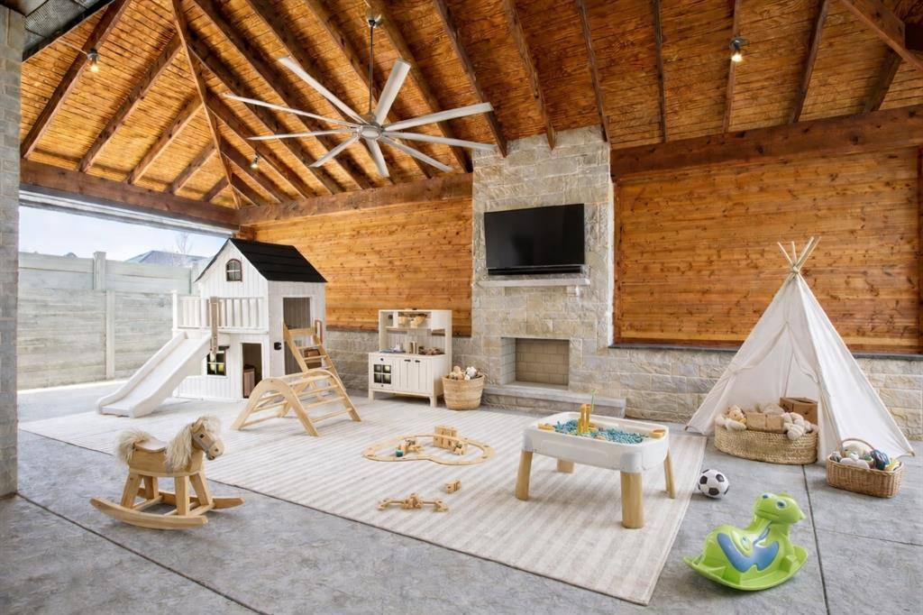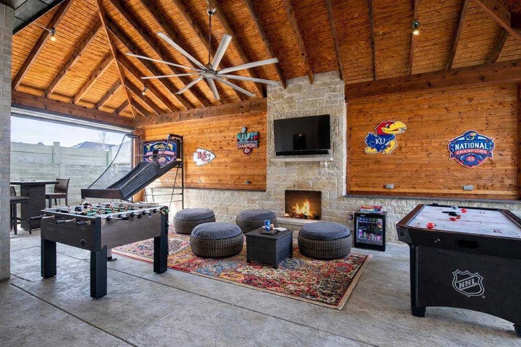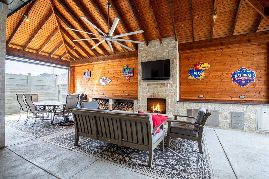 The standout feature is the expansive 35' x 19' covered patio addition, complete with electric screens, fireplace, TV wiring, and ceiling fans, creating a true outdoor living room perfect for entertaining, grilling, or relaxing while watching the game. Patio is accessible through the beautiful floor to ceiling wall of windows and sliding doors.