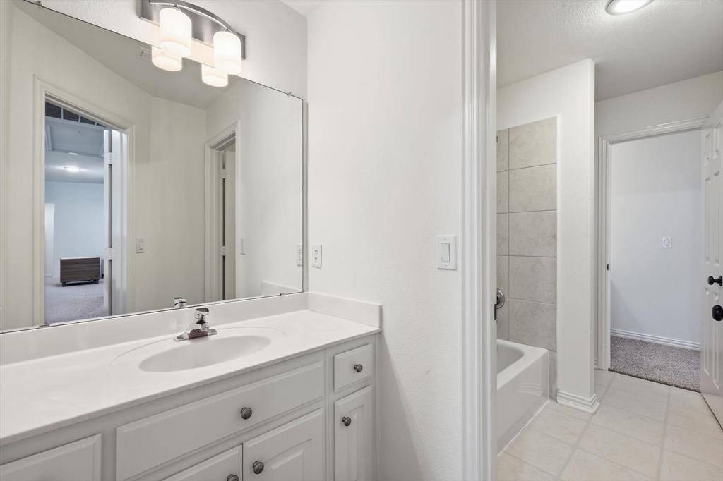 FINALLY! A MOVE IN READY & OH SO FRESH gorgeous home located on a coveted CUL DE SAC! MATURE TREES create an inviting storybook feeling, complementing the charm of this home located in the highly sought-after Castlewood community, on a quiet & quaint no-through traffic street. This exceptional residence is LIGHT, BRIGHT & CHEERY! You will LOVE all the many WALK IN CLOSETS in the hallways & bedrooms as well as a HUGE LAUNDRY room for STORAGE! Linger over treasured family time with a formal DINING ROOM! HUGE GAMEROOM! With 5 spacious bedrooms AND 4 FULL bathrooms, this home provides PRIVACY FOR EVERYONE with 2 bedrooms and 2 bathrooms downstairs and a SPLIT BEDROOM PLAN! The downstairs primary suite offers two WALK IN closets, dual sinks with quartz counters, a relaxing soaking tub, and a walk-in shower. You'll appreciate the many recent updates: FULL INTERIOR PAINT throughout, NEW CARPET in bedrooms and gameroom, UPDATED LIGHTING & OVERSIZED 2 GARAGE WITH FRESH EPOXY. Downstairs HVAC 2024! 2 water heaters 2023! SOD 2025! This neutral and transitional home will calm your senses and give you a sense of peace and tranquility. Rich engineered wood floors in the family room! GAS FIREPLACE! Very SPACIOUS KITCHEN features an ISLAND, NEW TILE FLOORS, QUARTZ COUNTERS & SLAB BACKSPLASH, NEW SINK & DISPOSAL, DOUBLE OVENS in 2022, WALK IN PANTRY, GAS COOKTOP & UNDER CABINET LIGHTING! Do you want to enjoy the weekend and some new hobbies, now you can with this easy to maintain backyard! Enough grassy area for your pup and the rest of the backyard you can just sit back and relax in! Concrete pad ready for hot tub! Walk the kids to the nearby PARK, SWIMMING POOL, CLUBHOUSE, PICKLEBALL, TENNIS, VOLLEYBALL & SOCCER COURTS! Just minutes from premier shopping at the outdoor mall, LAKE LEWISVILLE FOR BOATING & FISHING, COUNTLESS DINING OPTIONS, movie theatre, parks, TONS OF SCENIC WALKING TRAILS, TOP-RATED schools! Near the new COSTCO,SUPER TARGET,LOWES,MARKET STREET & WHOLE FOODS!